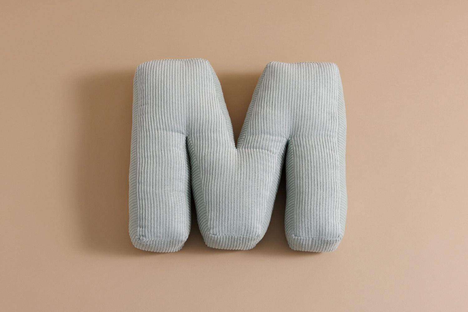 Coussin Lettre M - Velours Côtelé Vert d'eau