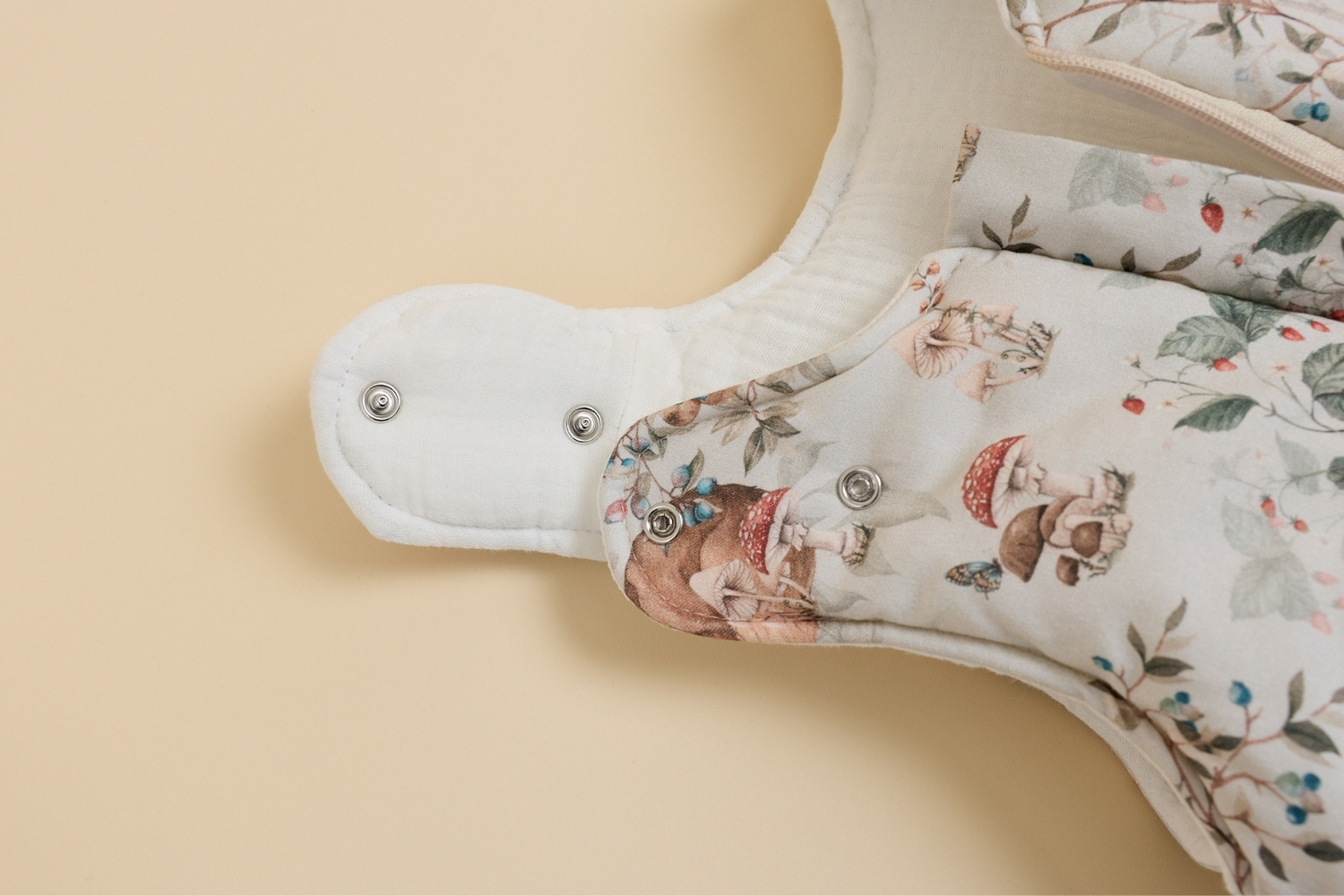 Extérieur 100 % coton de qualité associé à de la mousseline douce.Matériaux certifiés Oeko-Tex Standard 100 Classe I.