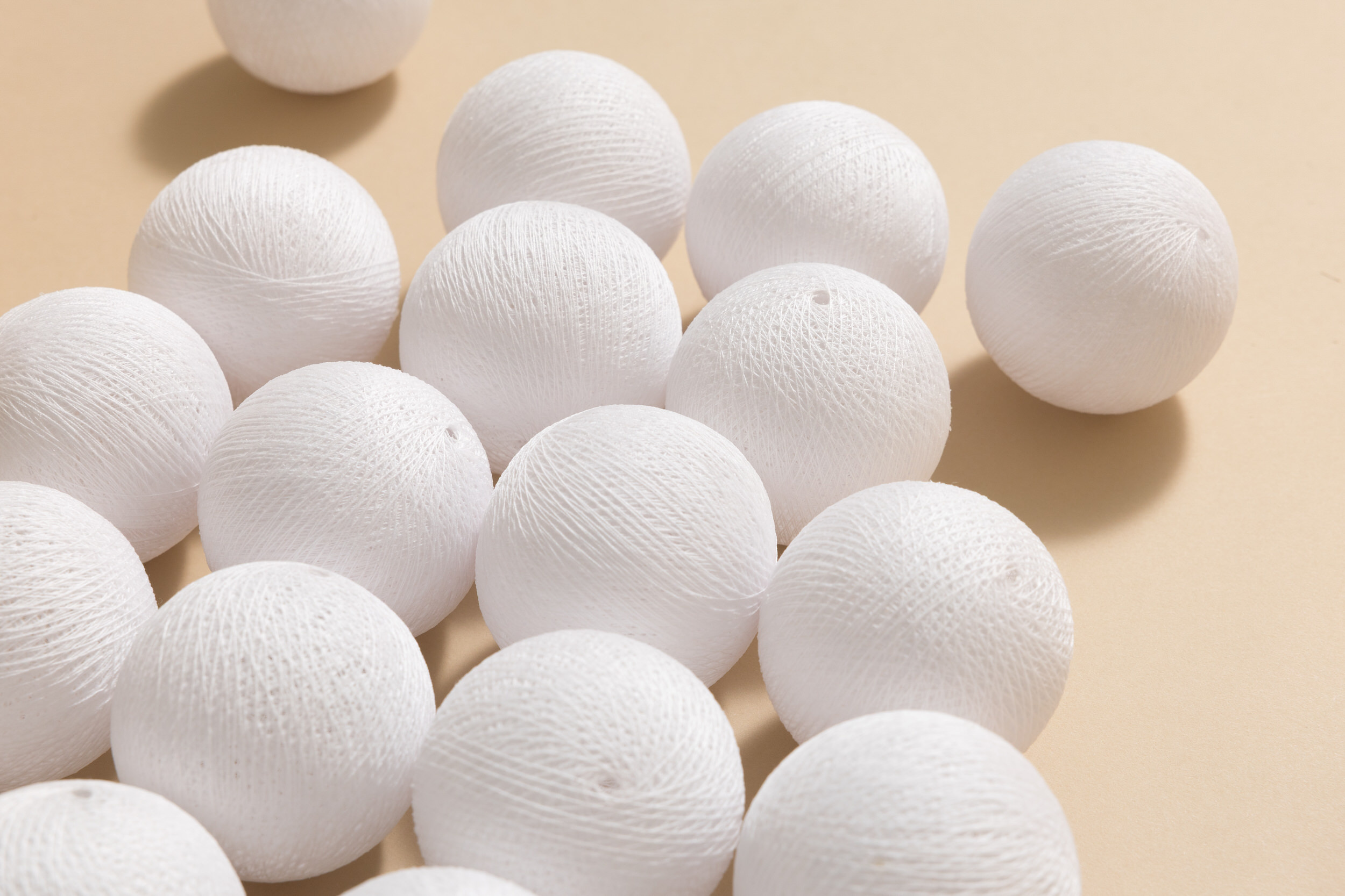 Le câble fait 3m, le diamètre des boules est de 6cm. Fonctionne sur secteur.