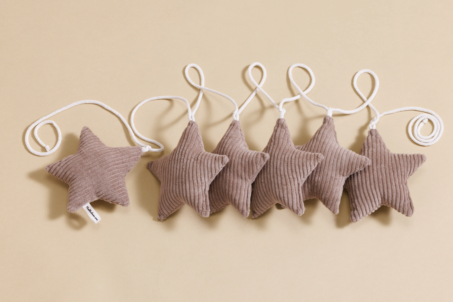 La décoration se compose de 6 étoiles en velours côtelé reliées par une corde en coton.