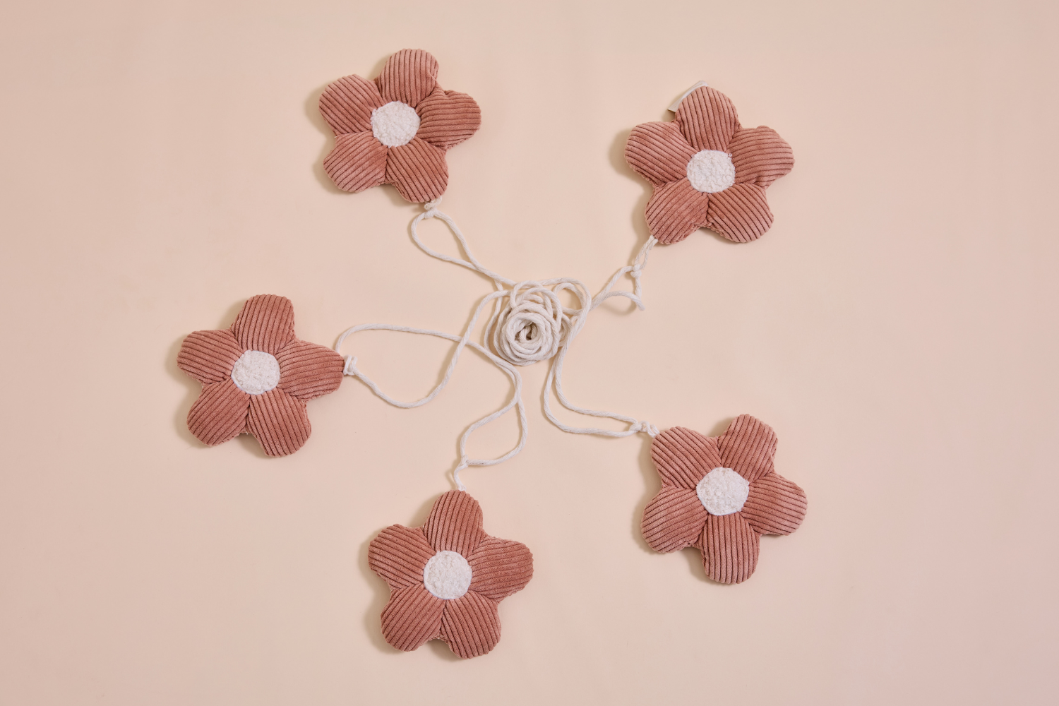 Guirlande Fleurs en Velours Côtelé - Pêche