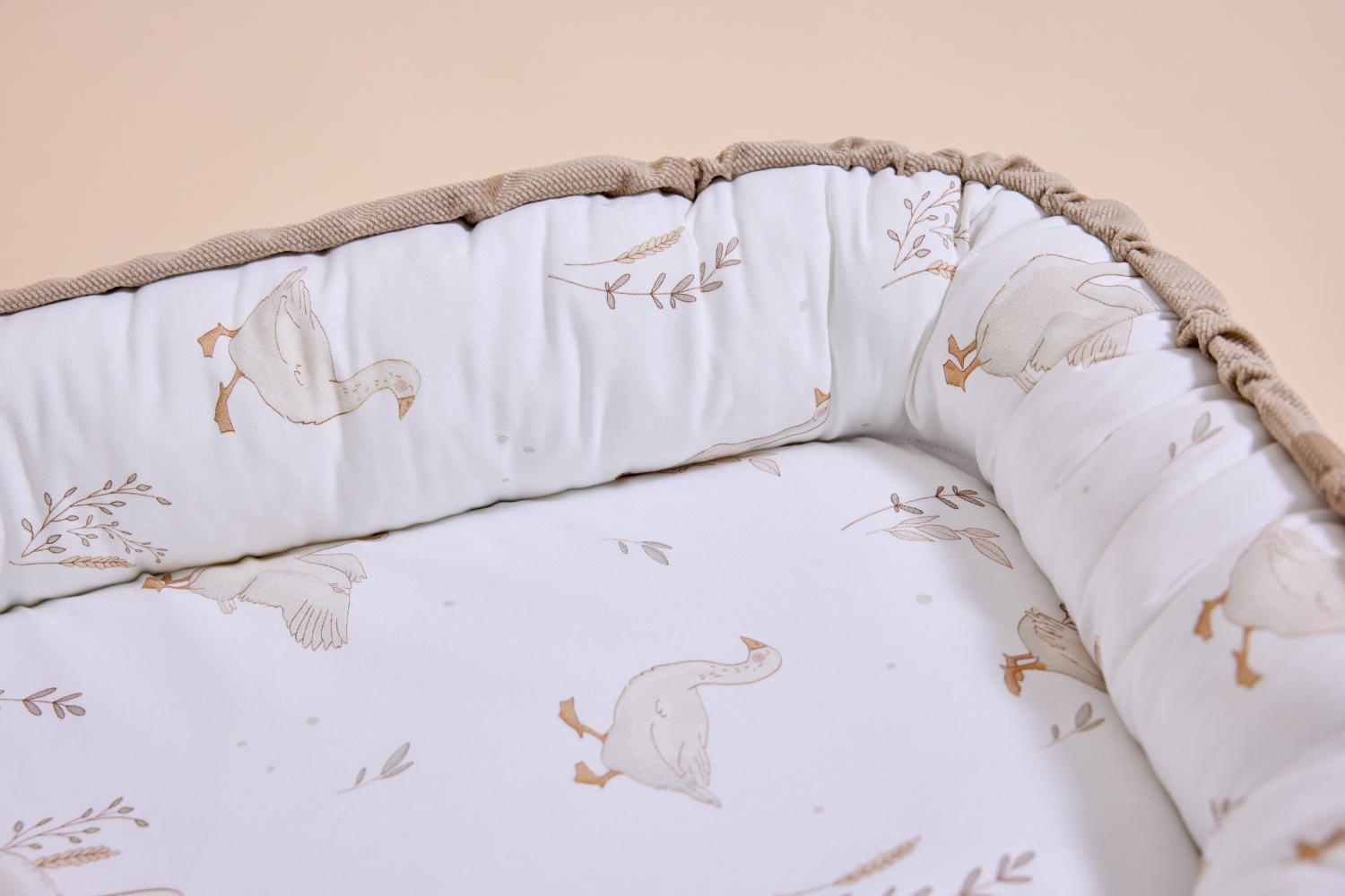 Le réducteur de lit est fabriqué à l'intérieur en coton velouté de haute qualité et à l'extérieur en tissu doux de qualité également. Tous les tissus et le matelas de la nacelle ont reçu le certificat de sécurité Oeko-Tex Standard 100.