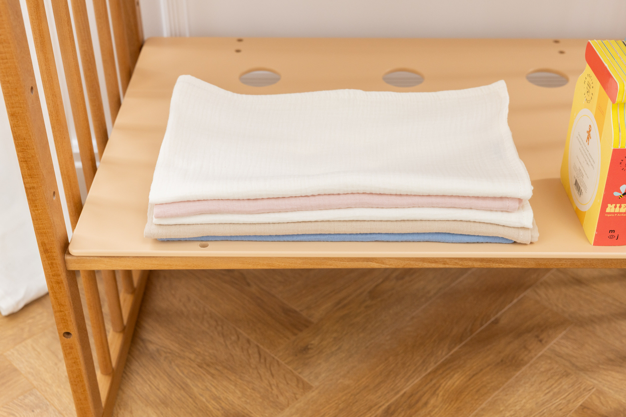 Les langes en mousseline peuvent être lavées en machine à un cycle délicat, elles sèchent rapidement et ne nécessitent pas de repassage.