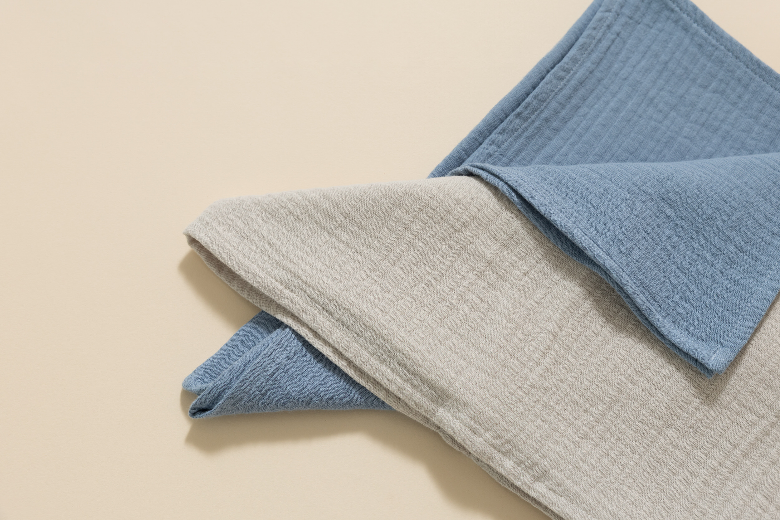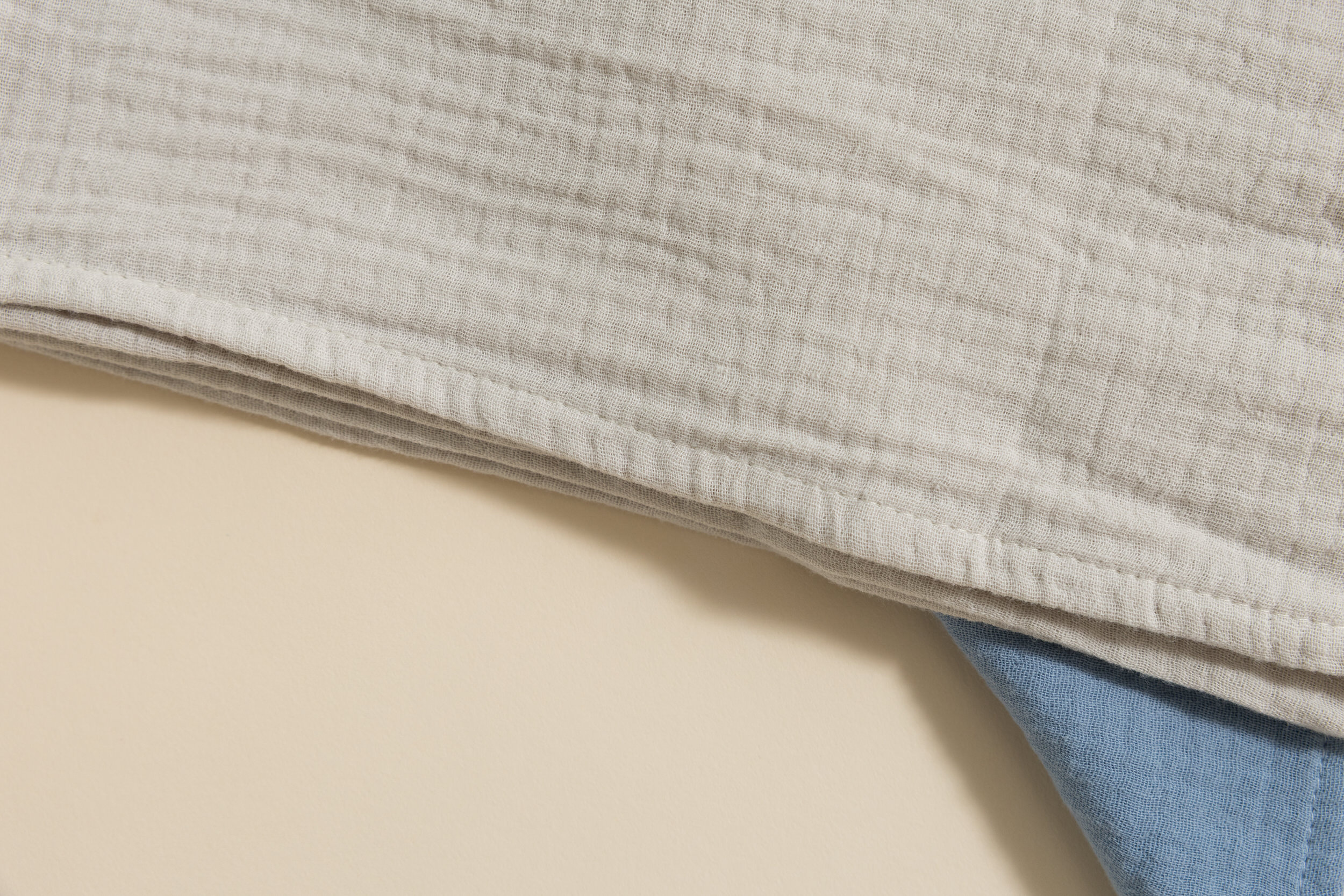 - Mousseline en coton double couche, certifiée Oeko-Tex.