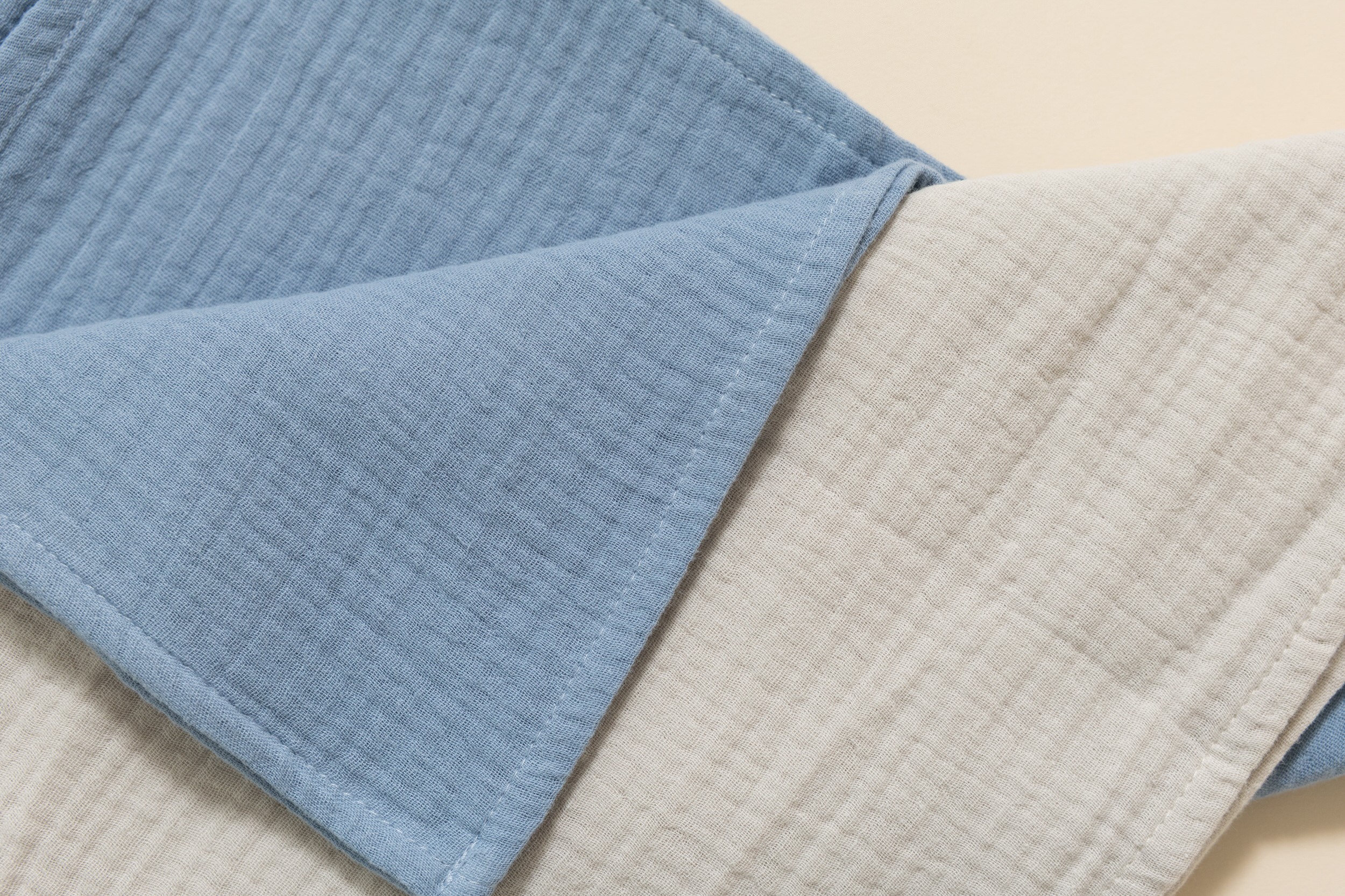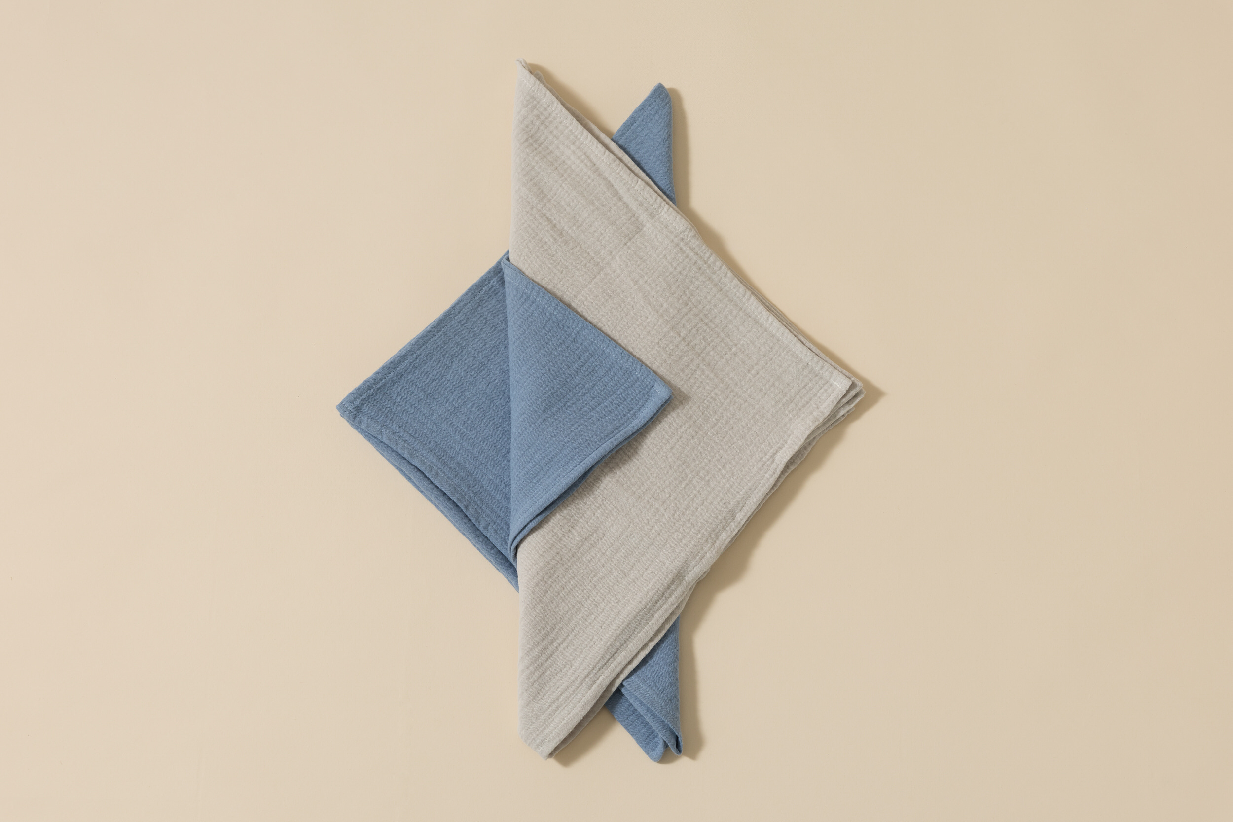 Lot de 2 Langes en Mousseline - Beige et Bleu