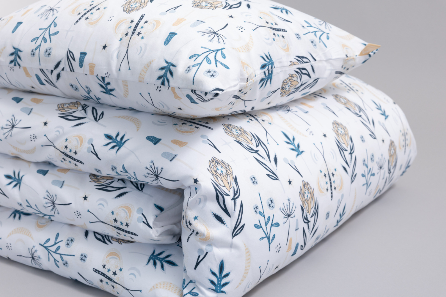 L'ensemble se compose d'une taie d'oreiller 60x60cm et d'une housse de couette 140 x 200 cm.