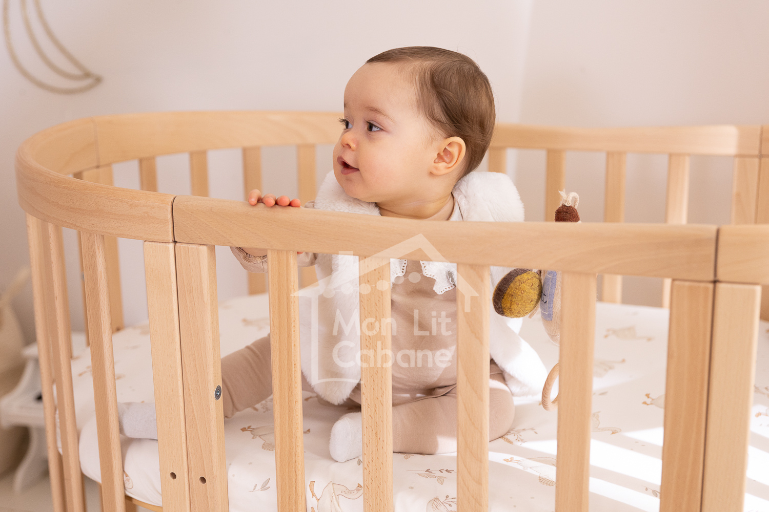 Le lit bébé ovale 7en1 est pratique, élégant et résistant.