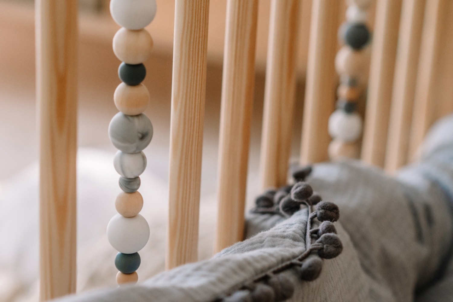 Le lit est enrichi de jolies perles sensorielles en bois et en silicone, intégrées aux barreaux, qui stimulent le sens du toucher et activent les récepteurs sensoriels de l’enfant.