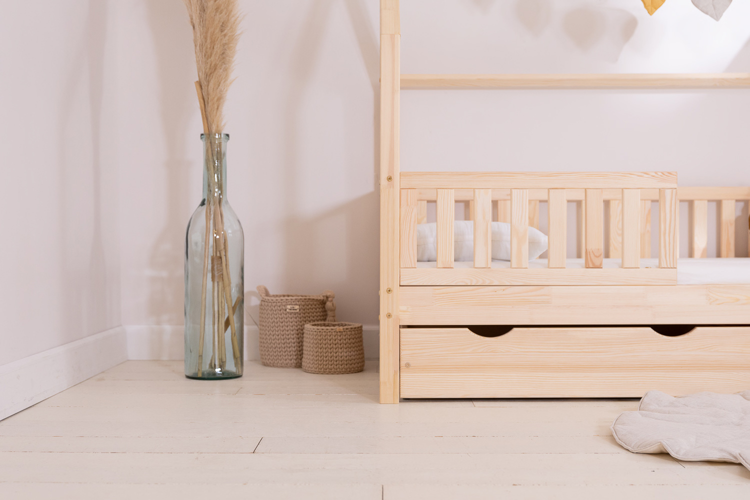 Tous nos lits sont faits en pin, non traités. Les contours sont arrondis et travaillés.