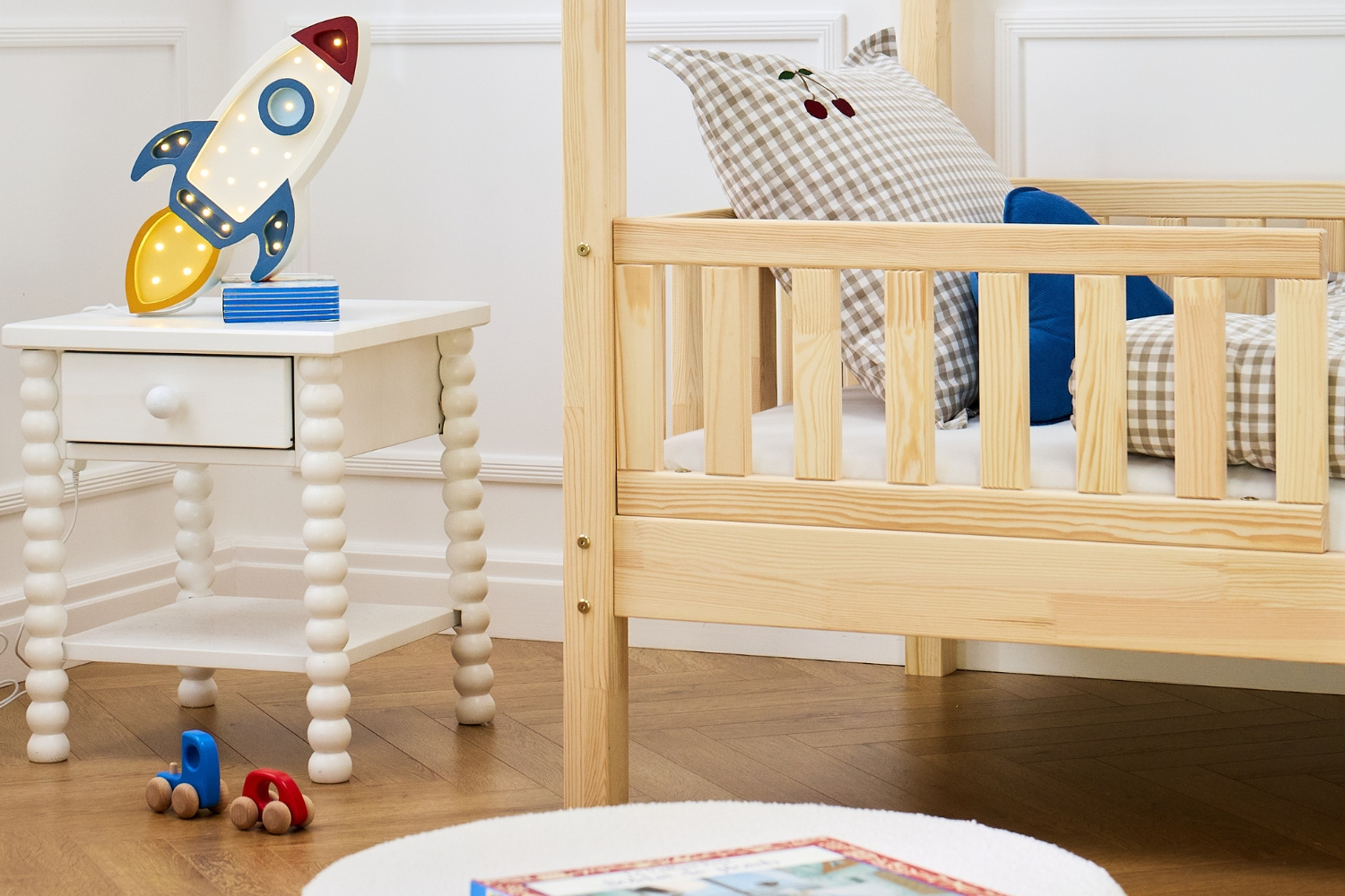 Tous nos lits sont faits en pin, non traités. Les contours sont arrondis et travaillés.