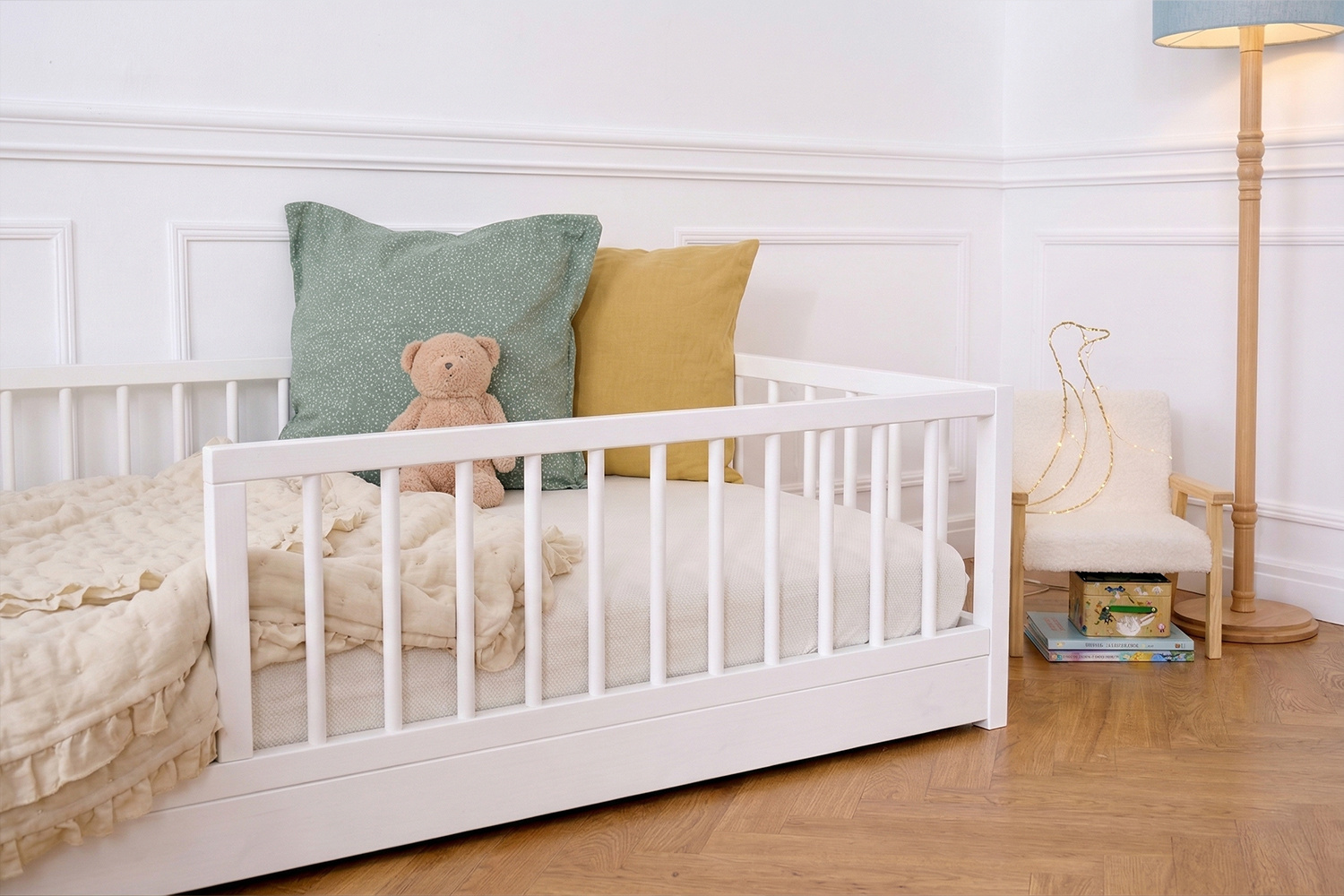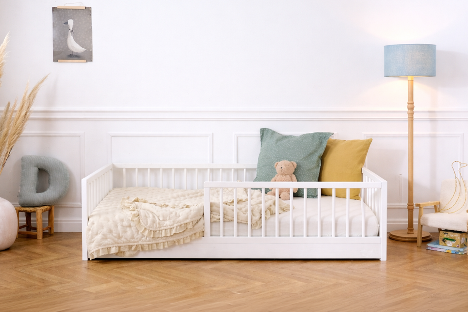 Il est placé directement sur le sol, permettant à votre enfant de monter et descendre librement du lit. C'est une solution idéale pour les tout-petits apprenant à devenir indépendants et explorant le monde à leur rythme. Le profil bas élimine le risque de chutes tout en assurant un sommeil confortable. De plus, les bords arrondis et la structure solide en matériaux de haute qualité garantissent la sécurité de votre petit.