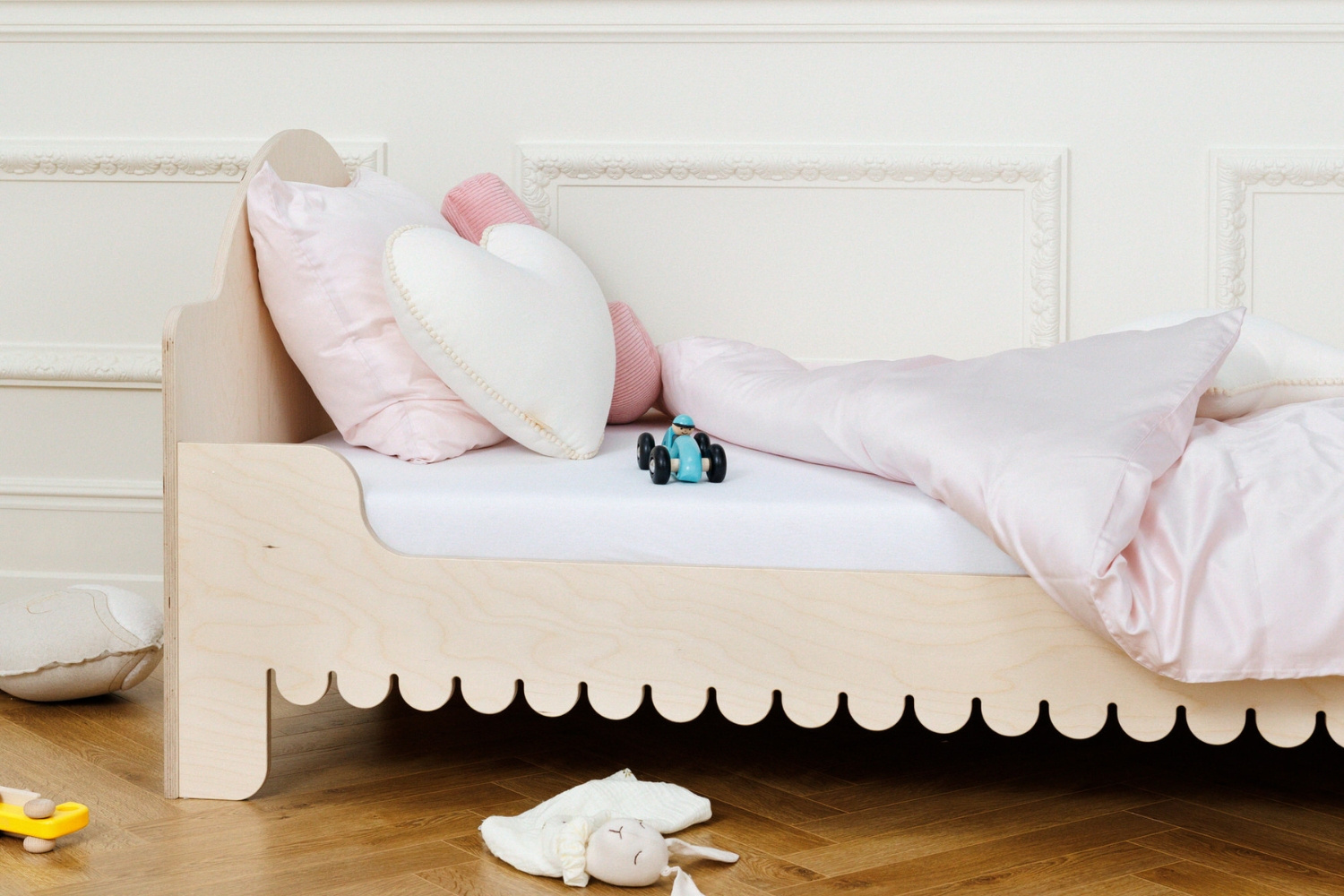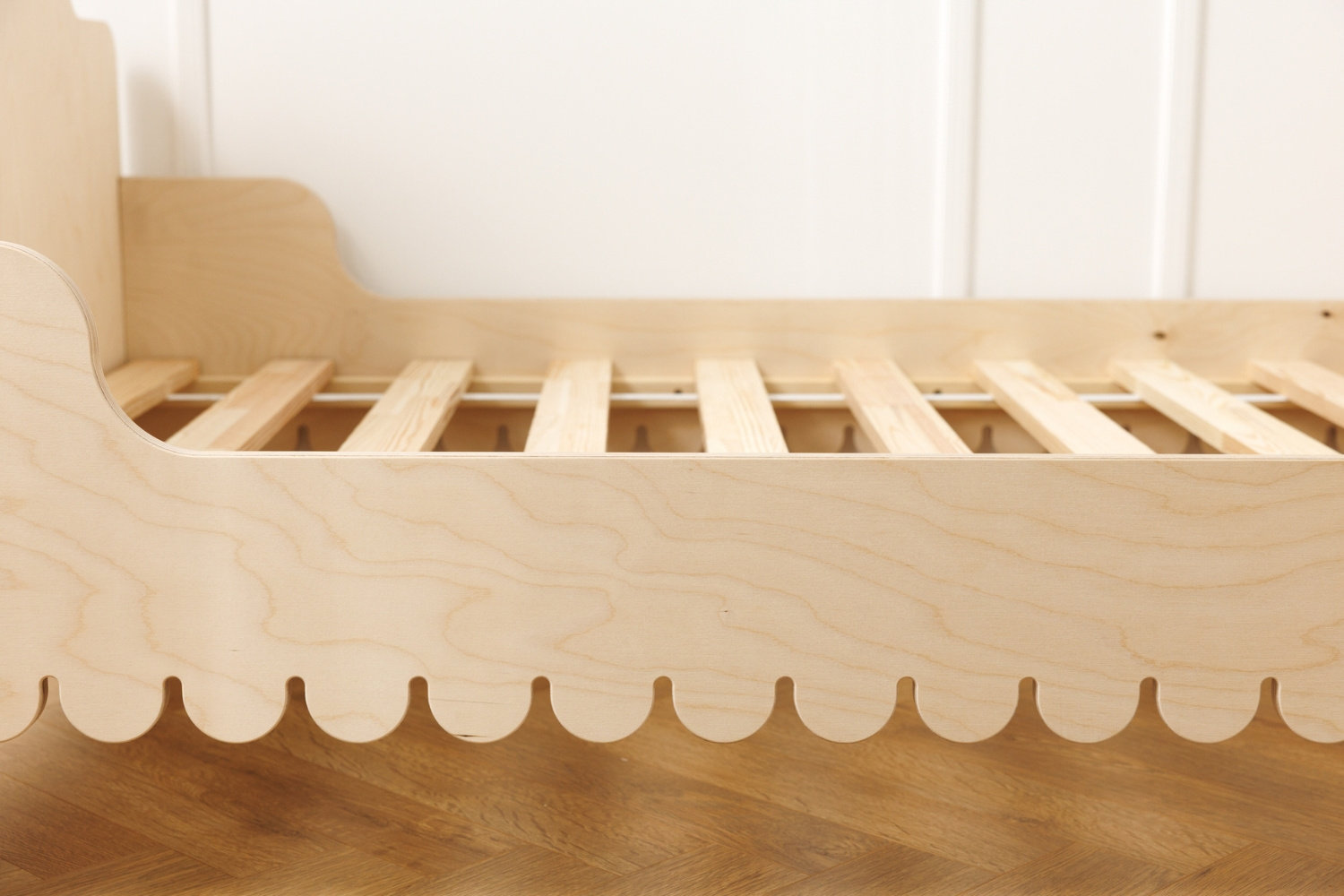 Tous nos lits sont faits en pin, non traités. Les contours sont arrondis et travaillés.