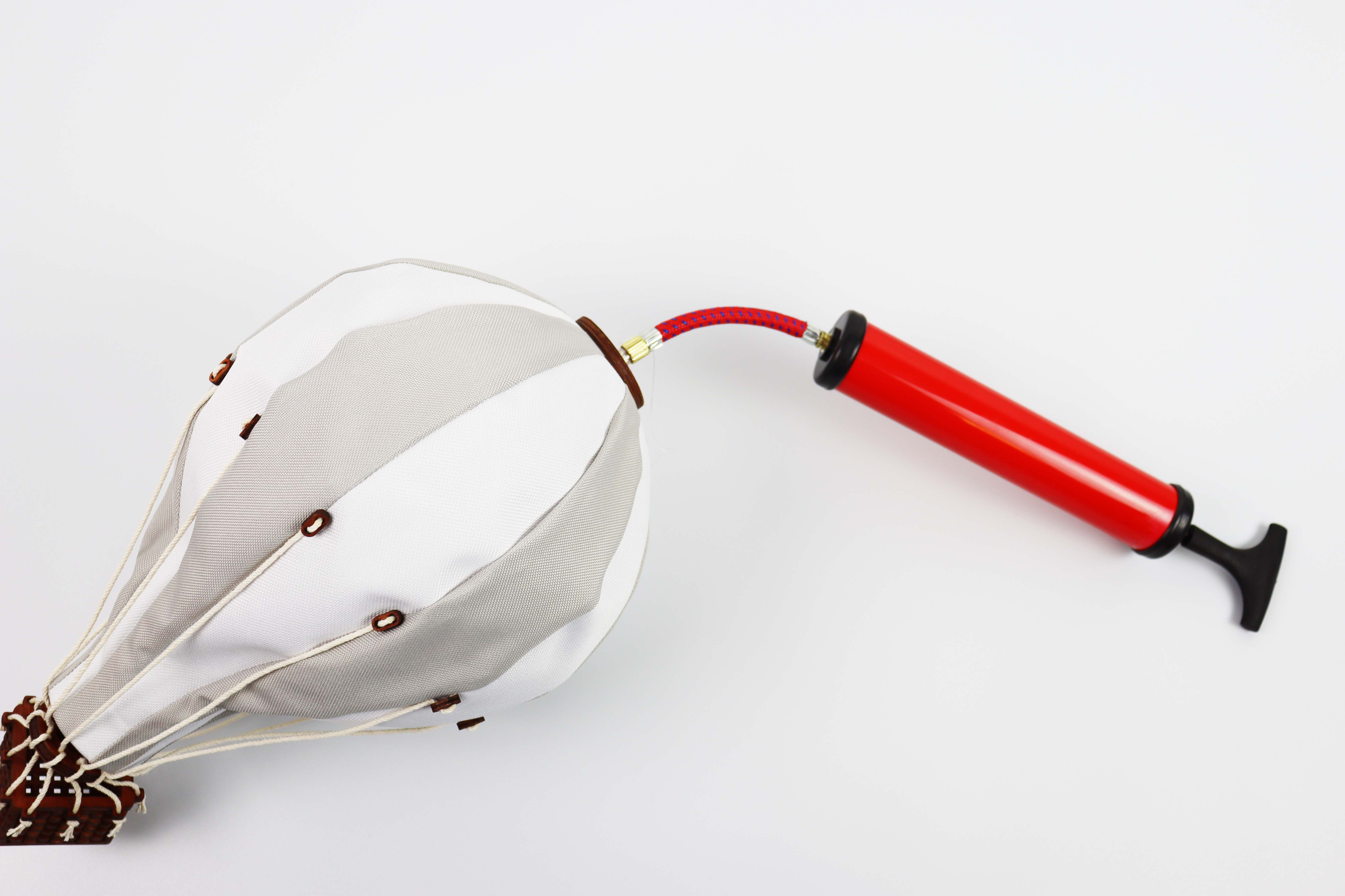 En taille L, la montgolfière est lestée par des poids.