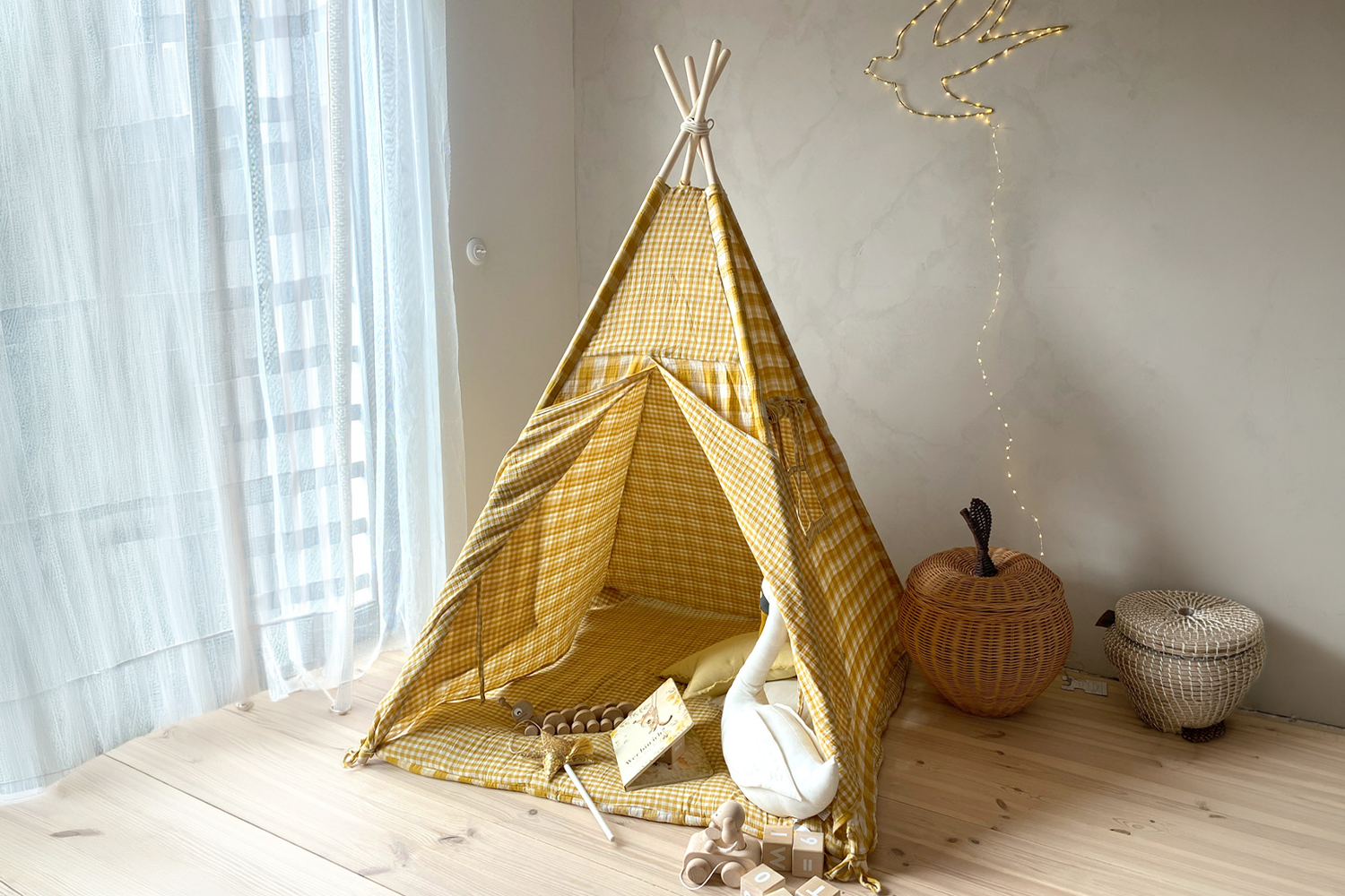 Tipi en Mousseline à Carreaux avec Tapis - Miel