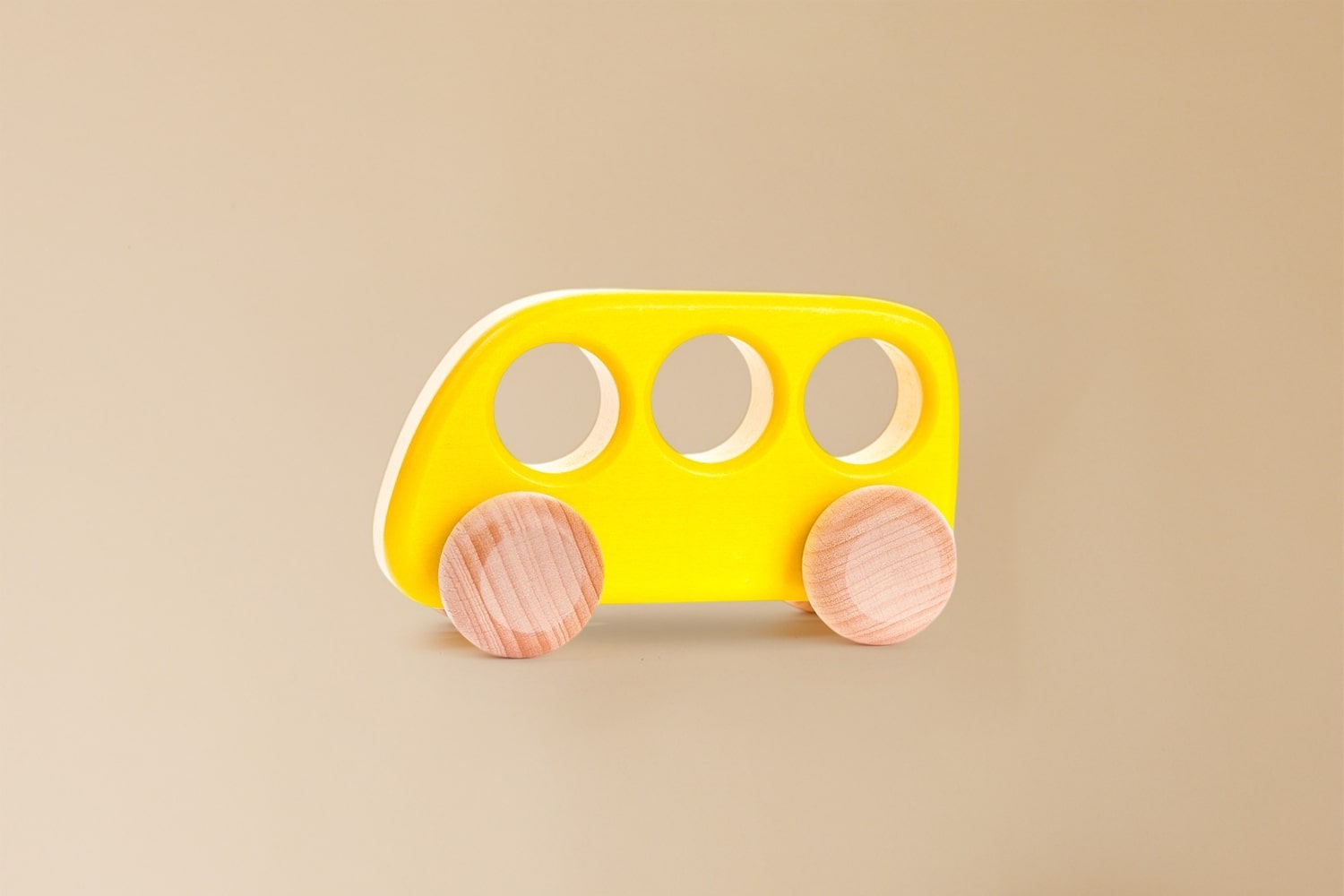 La voiture a des éléments non peints conformément aux valeurs de la société Bajo, qui s'assure que chaque jouet a un élément naturel en bois et non peint.