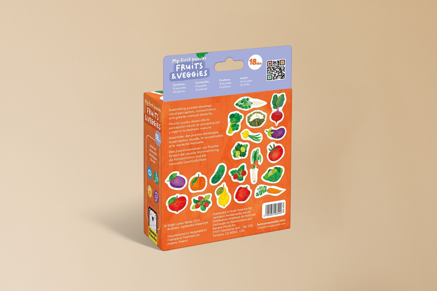 All'interno, troverai 19 puzzle a due pezzi con illustrazioni di frutta e verdura preferite.