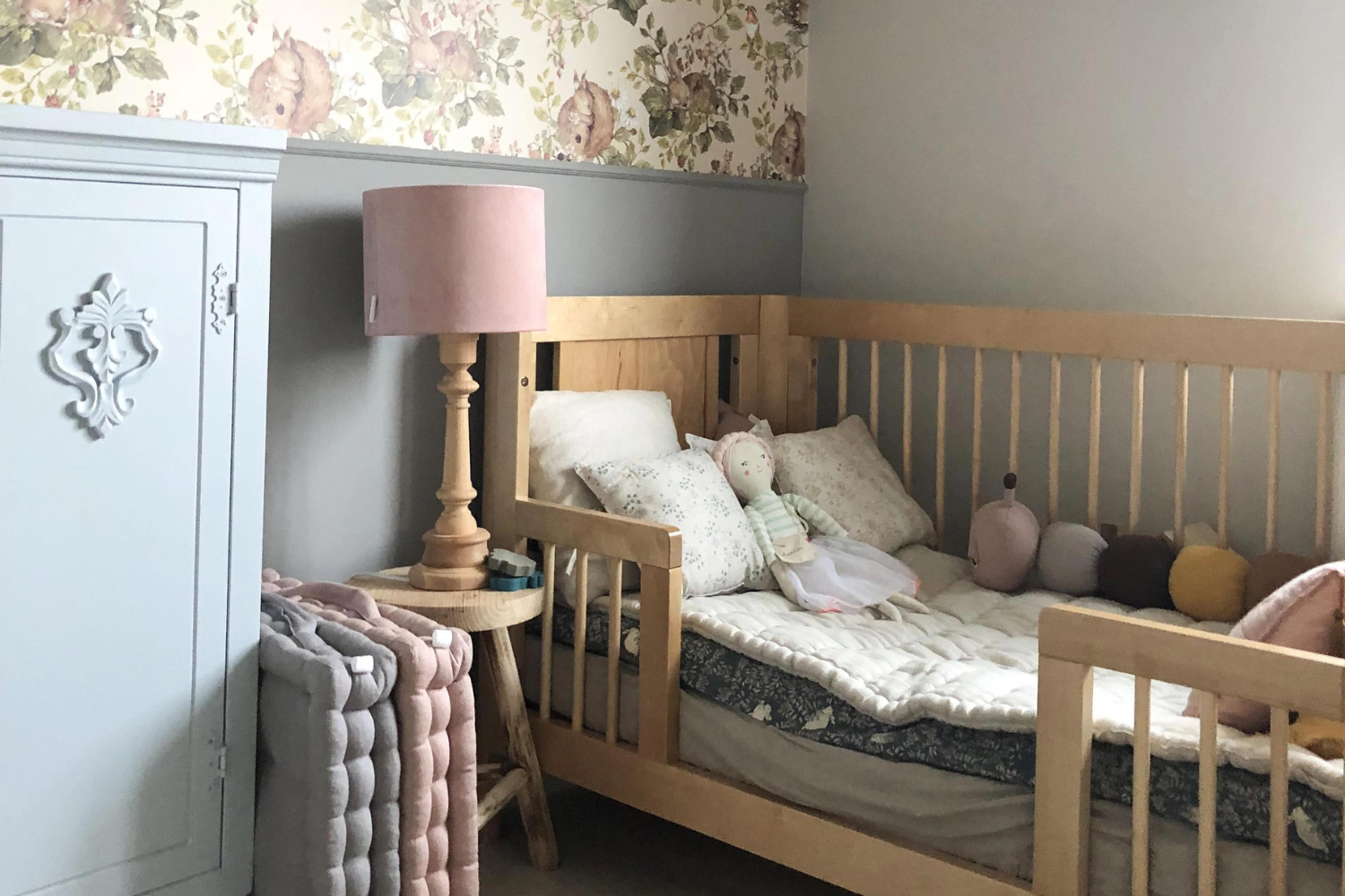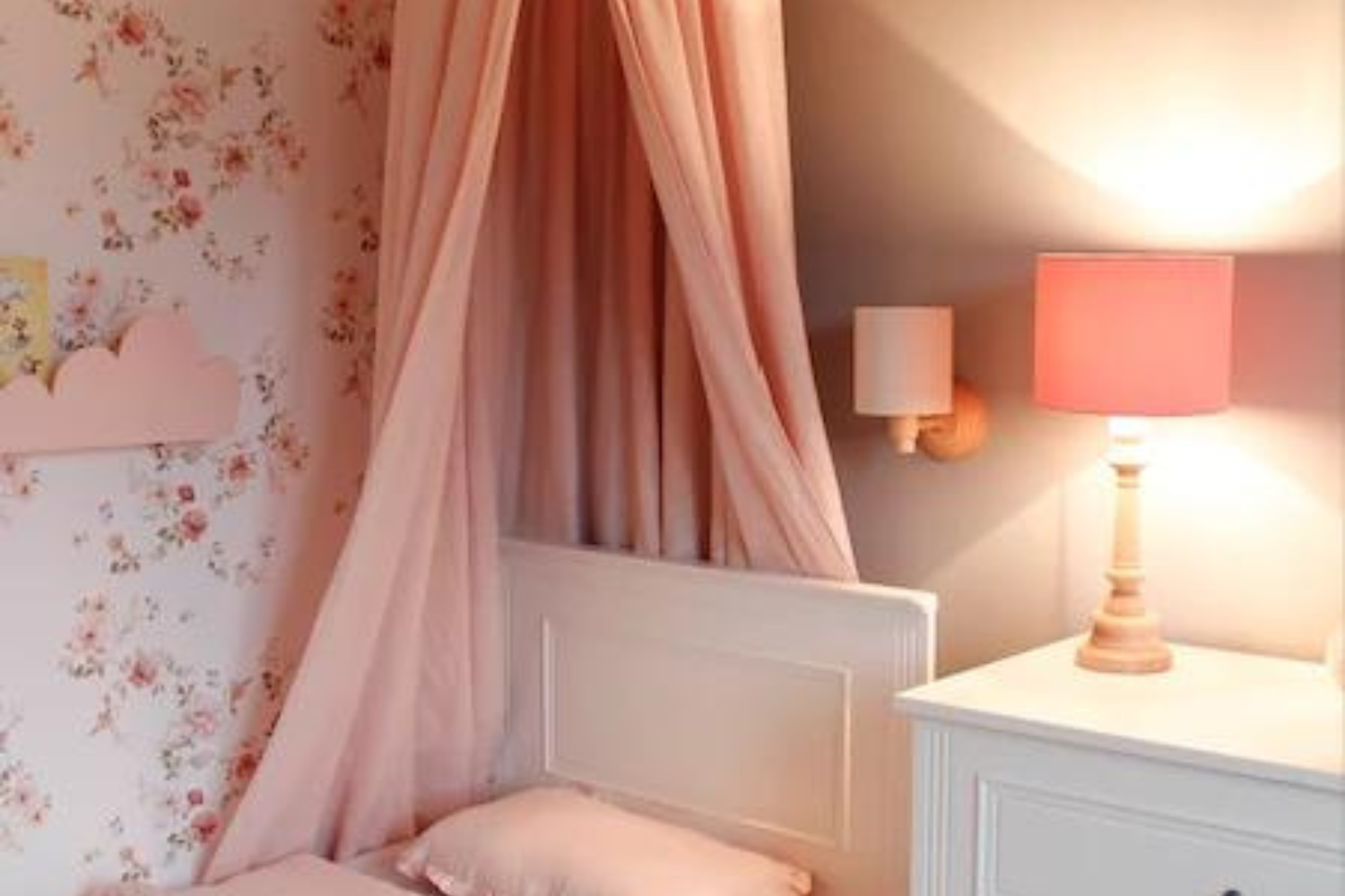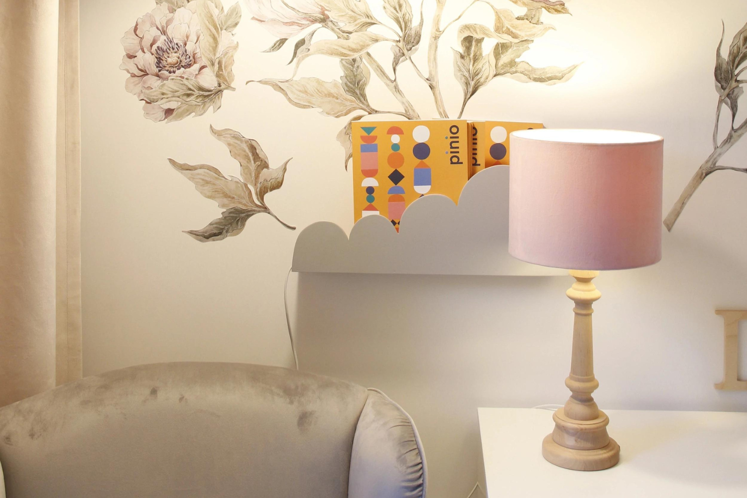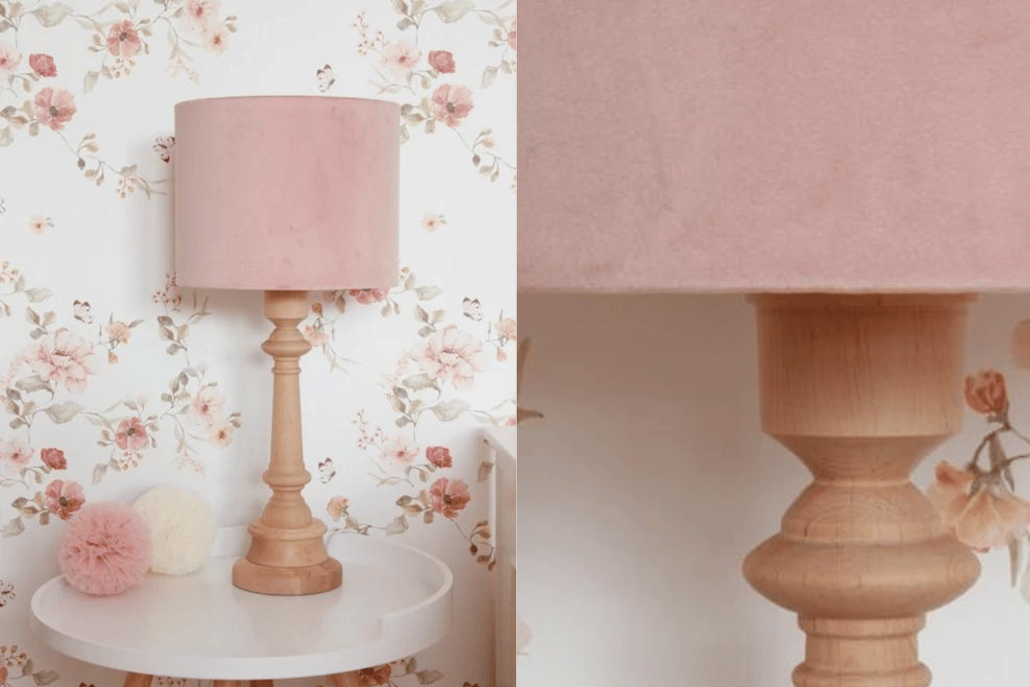 Una lampada per bambini con paralume in velluto è un'ottima idea per un'illuminazione supplementare nella stanza dei bambini. Il suo bellissimo supporto in legno aggiungerà fascino alla decorazione.
