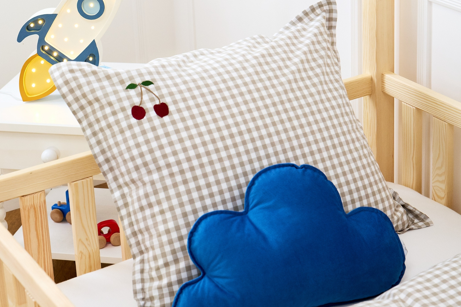 Il nostro affascinante set di biancheria da letto a quadri in cotone per bambini, con un delicato ricamo a ciliegia, è realizzato con cotone della migliore qualità.