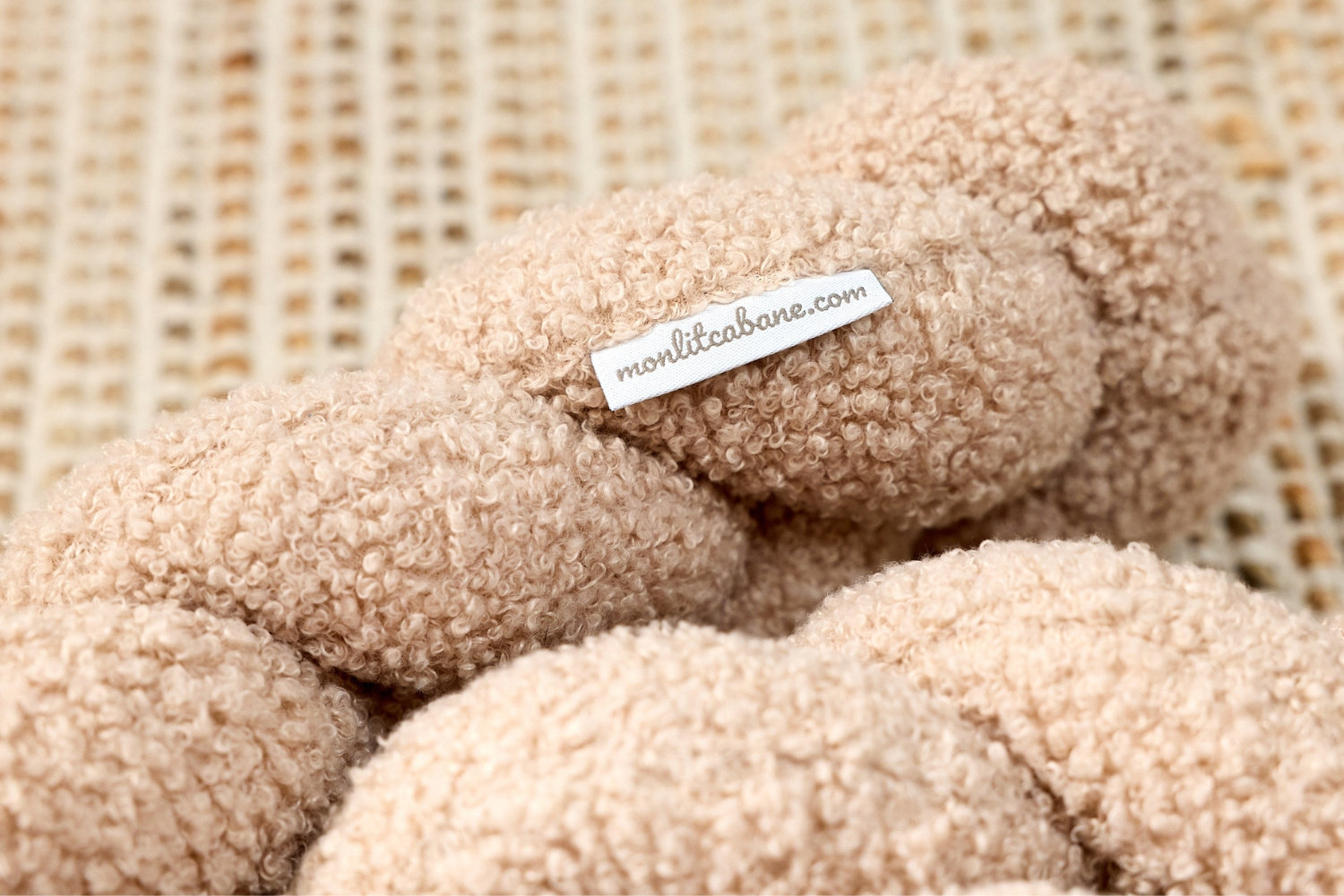 Fatto a mano, tessuto lavorato a maglia bouclé, 100% poliestere e certificato Oeko-Tex 100.