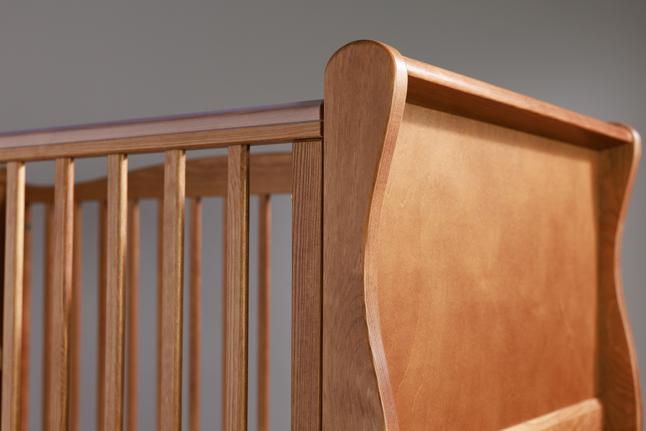 Le doghe di questo letto sono piatte, il che aumenta la resistenza strutturale. Il letto è dotato di certificati di sicurezza, senza spigoli o angoli vivi. La culla ha una distanza di sicurezza tra le doghe nella parte inferiore del letto.