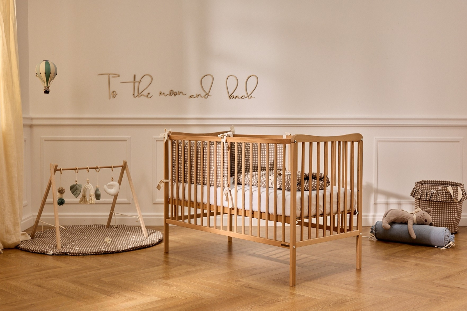Questo modello di lettino è realizzato in legno di faggio ecologico di alta qualità. Progettato con cura e protetto da vernice ecologica certificata, il legno di faggio garantisce maggiore solidità e durata. Il fondo a doghe offre stabilità e migliore ventilazione per il materasso.