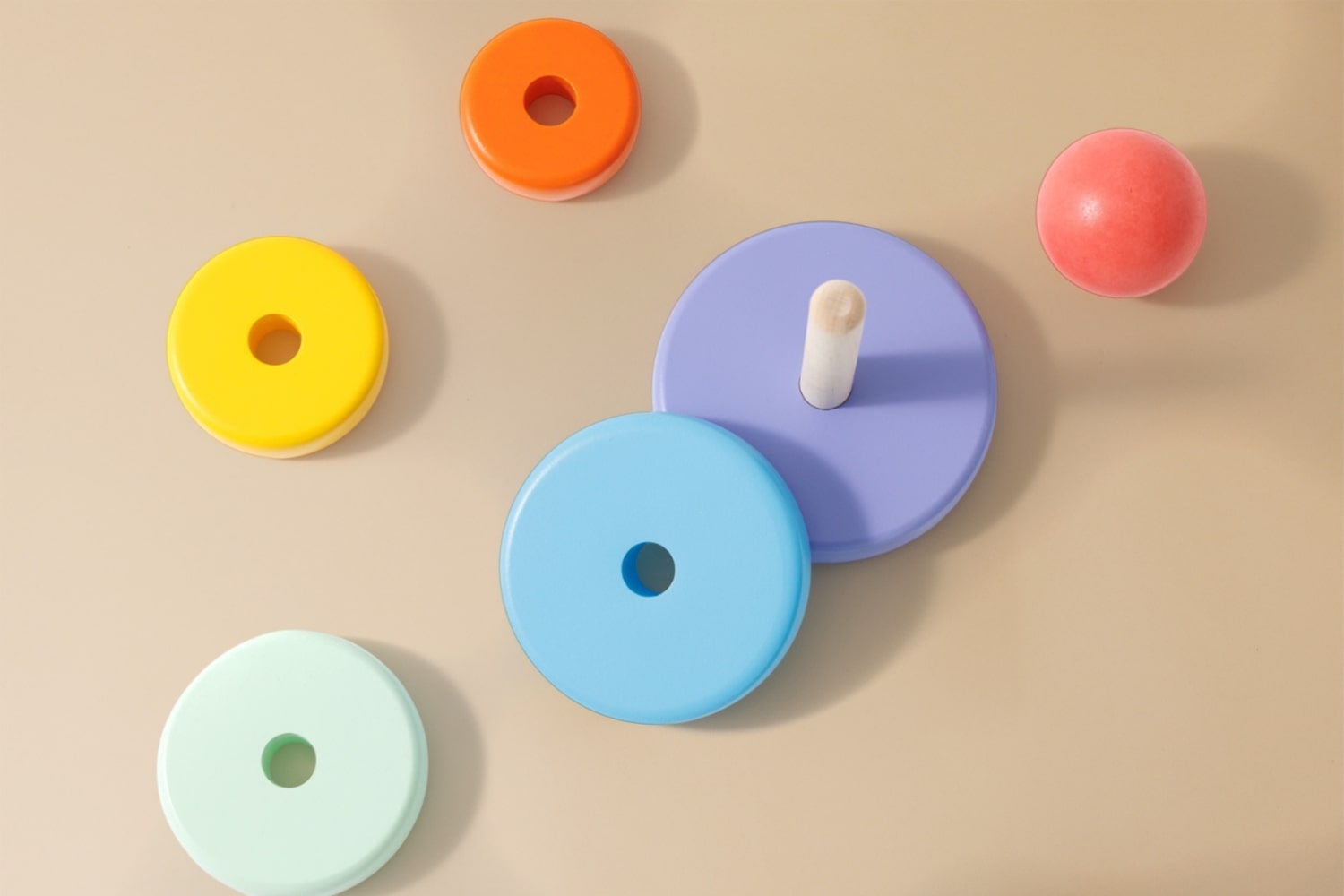 Sei diverse dimensioni di figure creano una vasta gamma di giochi diversi. Possono essere posati dal più grande al più piccolo.