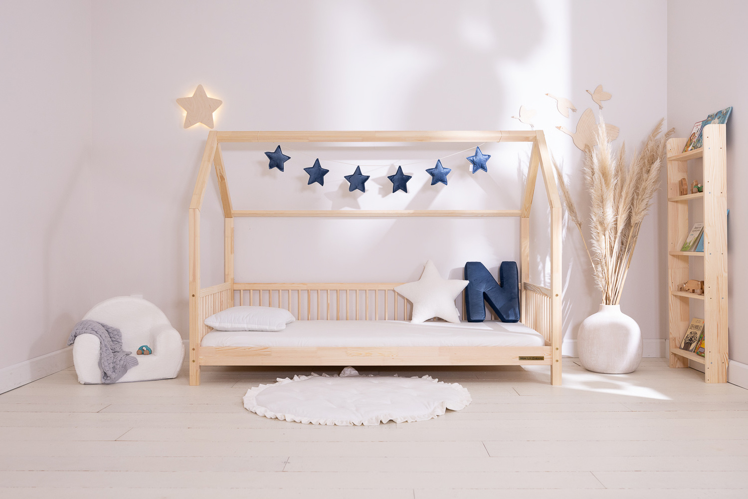 Tutti i nostri letti sono fabbricati in legno di pino, non trattato. Gli angoli sono smussati.