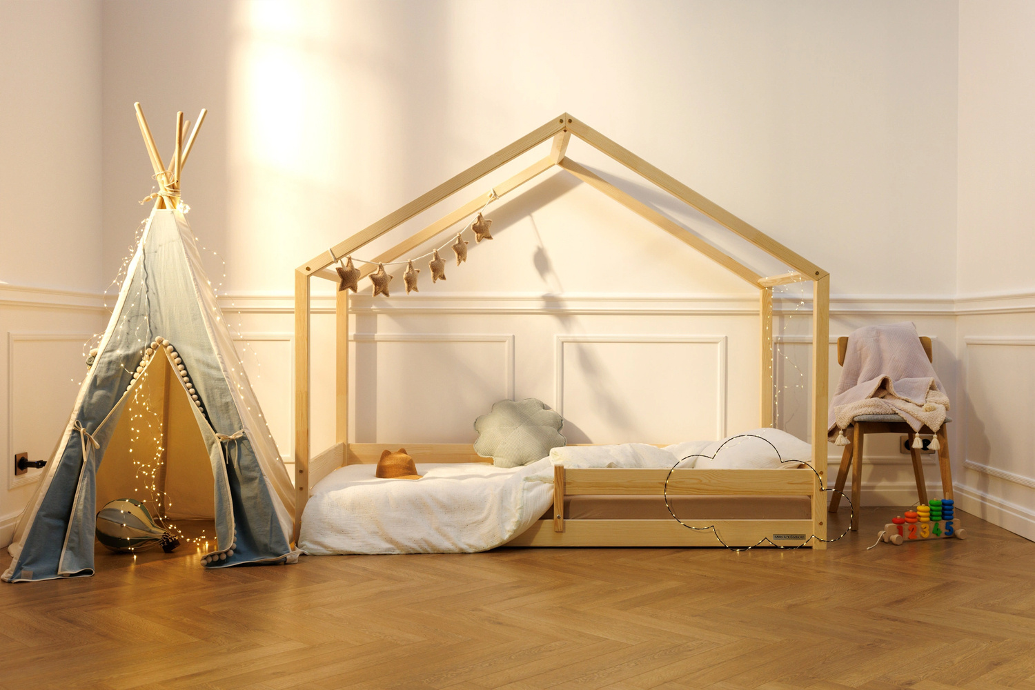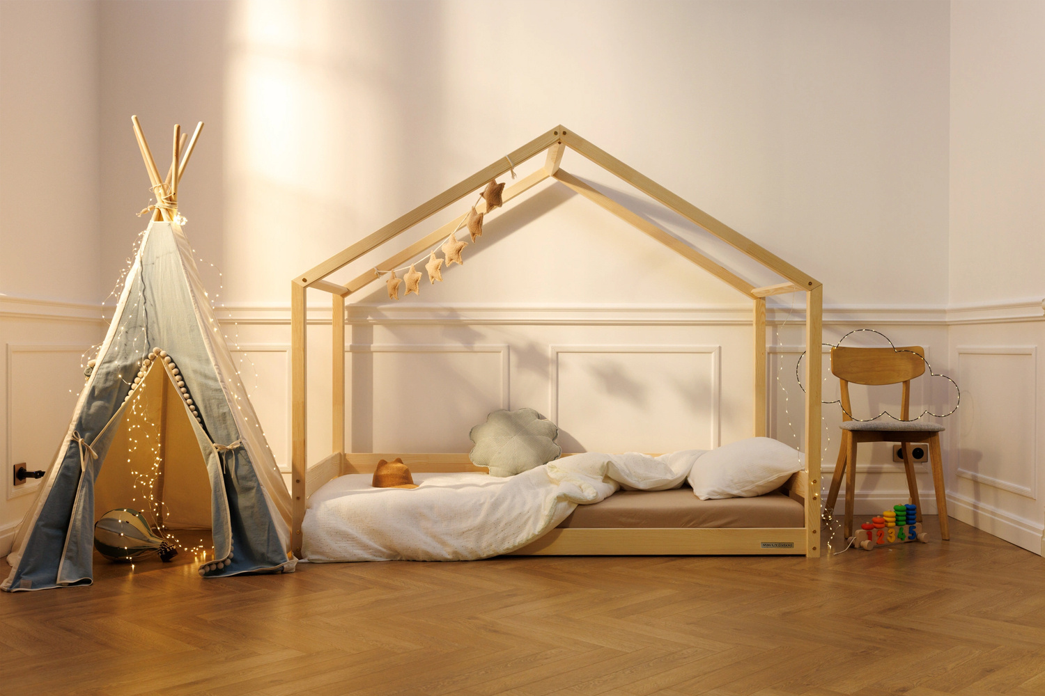 Tutti i nostri letti sono fabbricati in legno di pino non trattato. Gli angoli sono smussati.