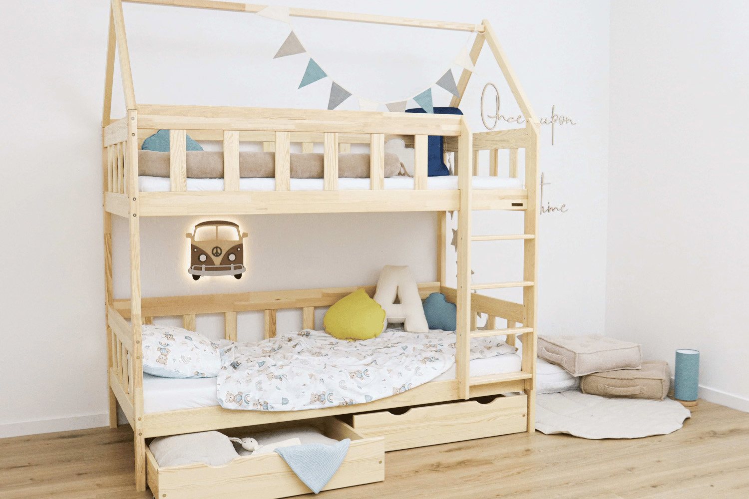 Tutti i nostri letti sono realizzati in pino, non trattato. I bordi sono arrotondati.