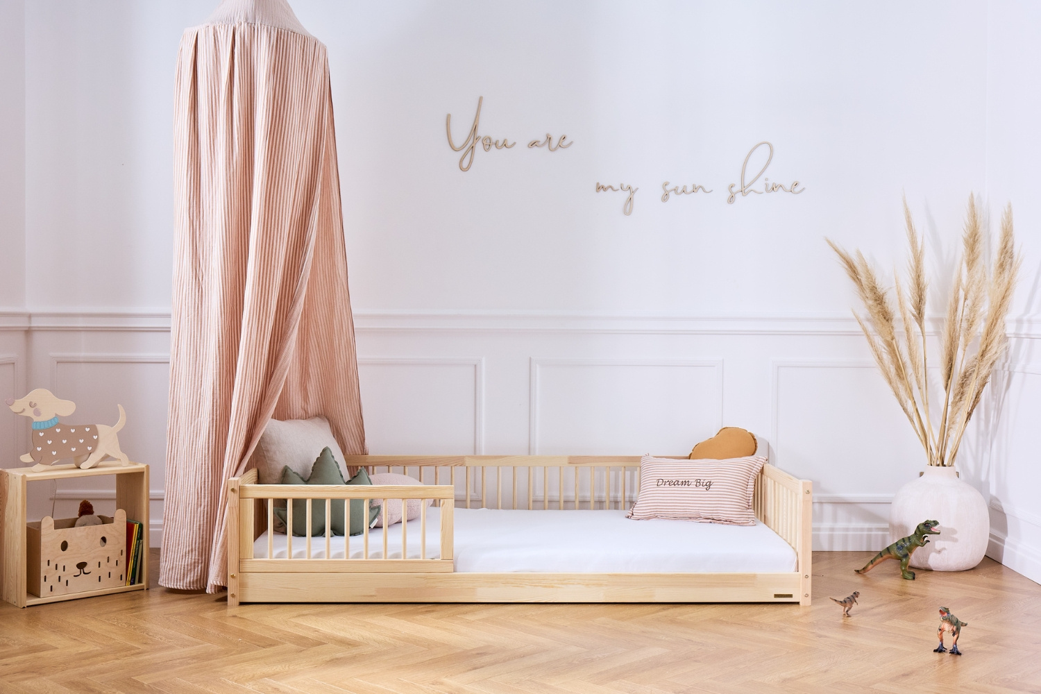 34cm di altezza, removibili sul davanti. Il letto è dotato di due tipi di barriere, che consentono di realizzare un ingresso laterale o un ingresso centrale.