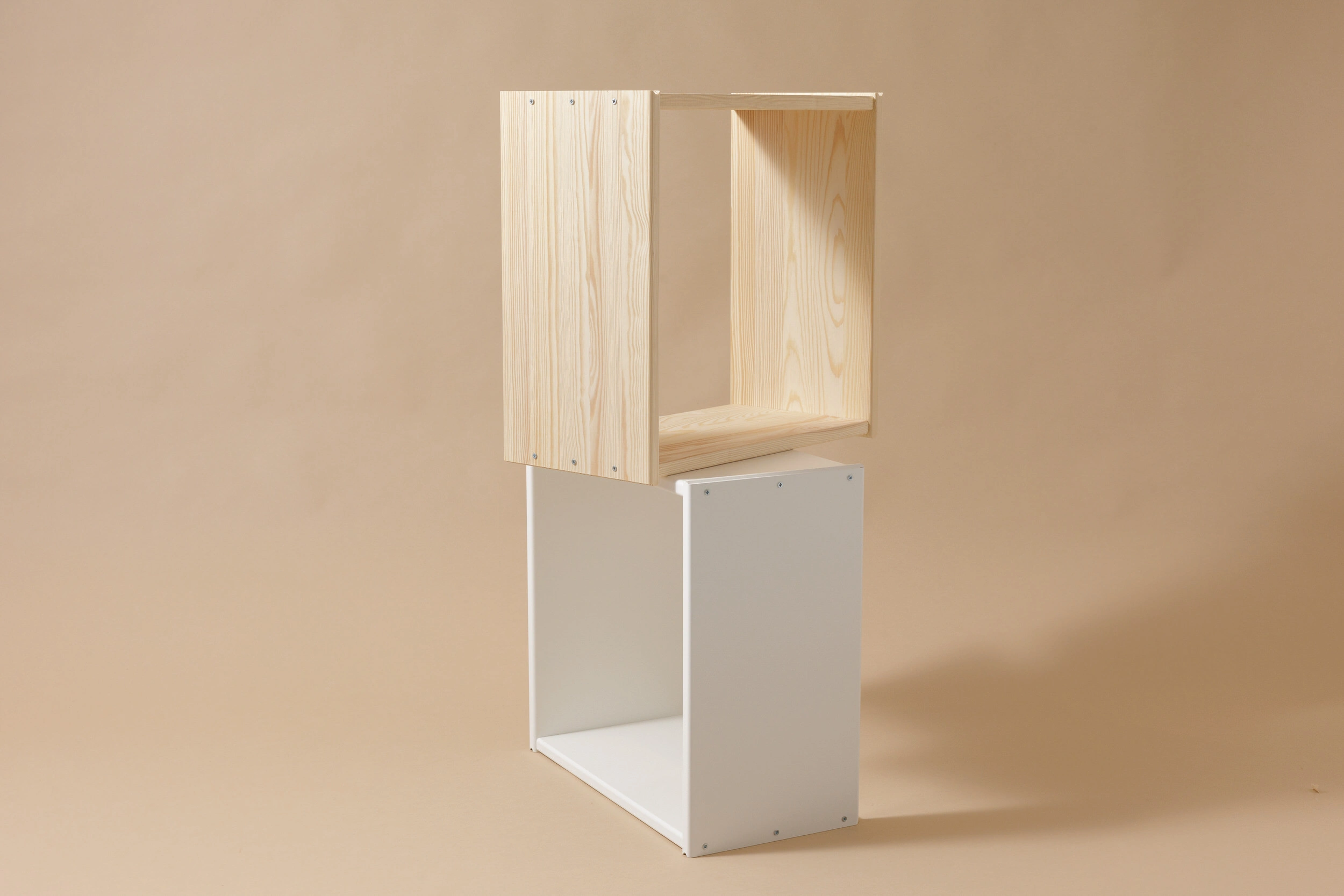 Ogni cubo può essere utilizzato come soluzione indipendente, ad esempio come comodino, o combinato con gli altri cubi per creare uno scaffale personalizzato. Potete disporli in qualsiasi forma per adattarli alle vostre esigenze di spazio e di stoccaggio. Ogni cubo è sagomato sui bordi per adattarsi perfettamente l'uno all'altro, assicurando che rimangano saldamente in posizione senza spostarsi.