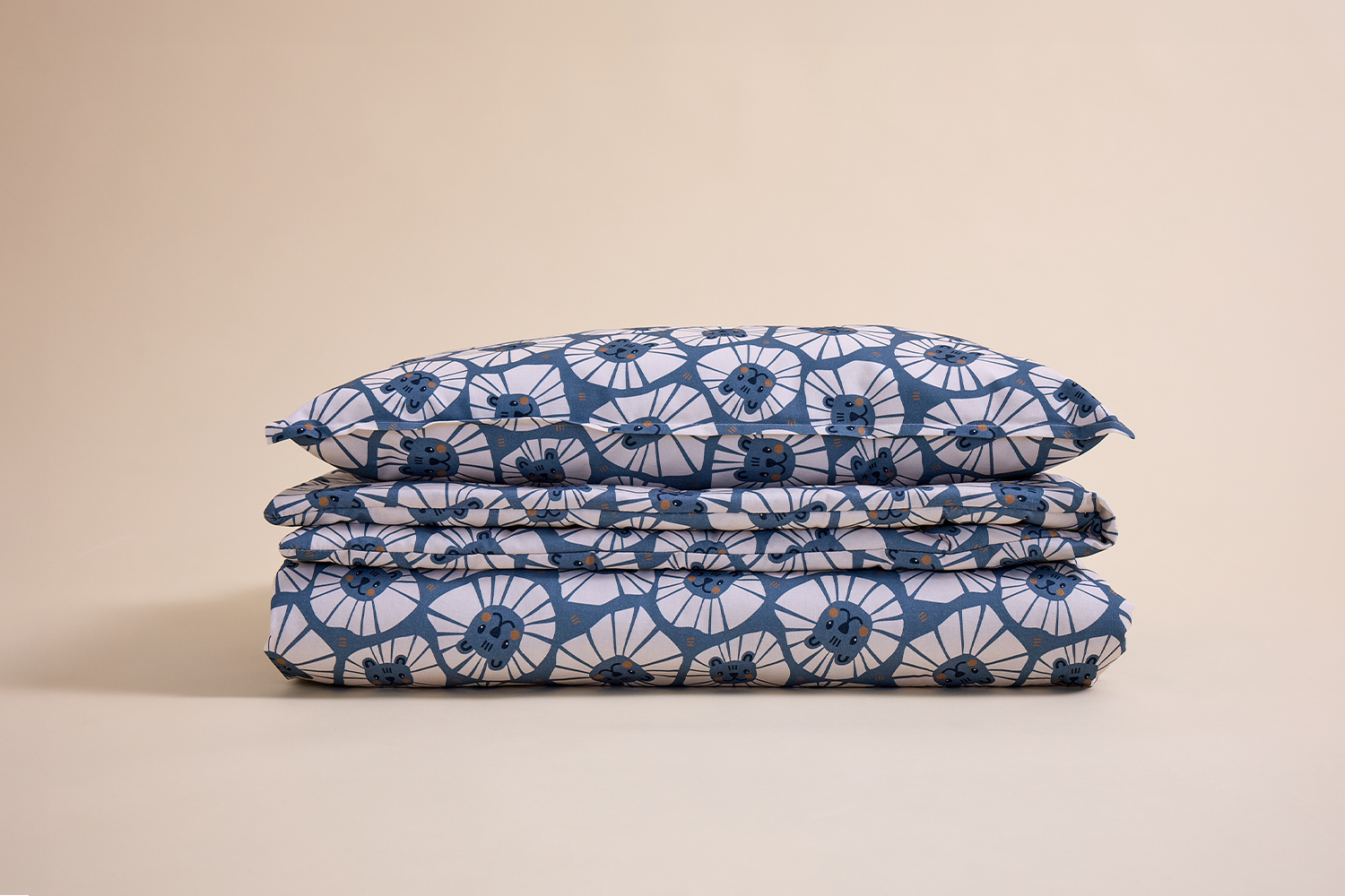 Il set è cucito in cotone, molto morbido al tatto. L'intero set è rifinito con un bordo sottile sulla federa, che è rimovibile, e trapuntatura orizzontale sul piumino.