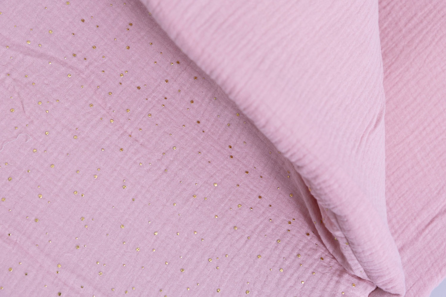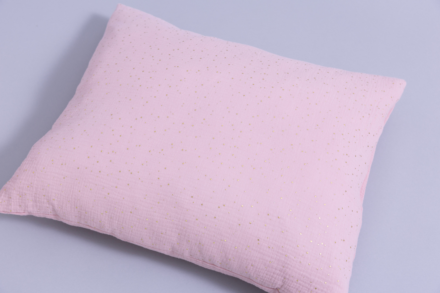 Set piumone e cuscino in mussola di cotone 120x170 - Rosa Salmone a Pois Dorati