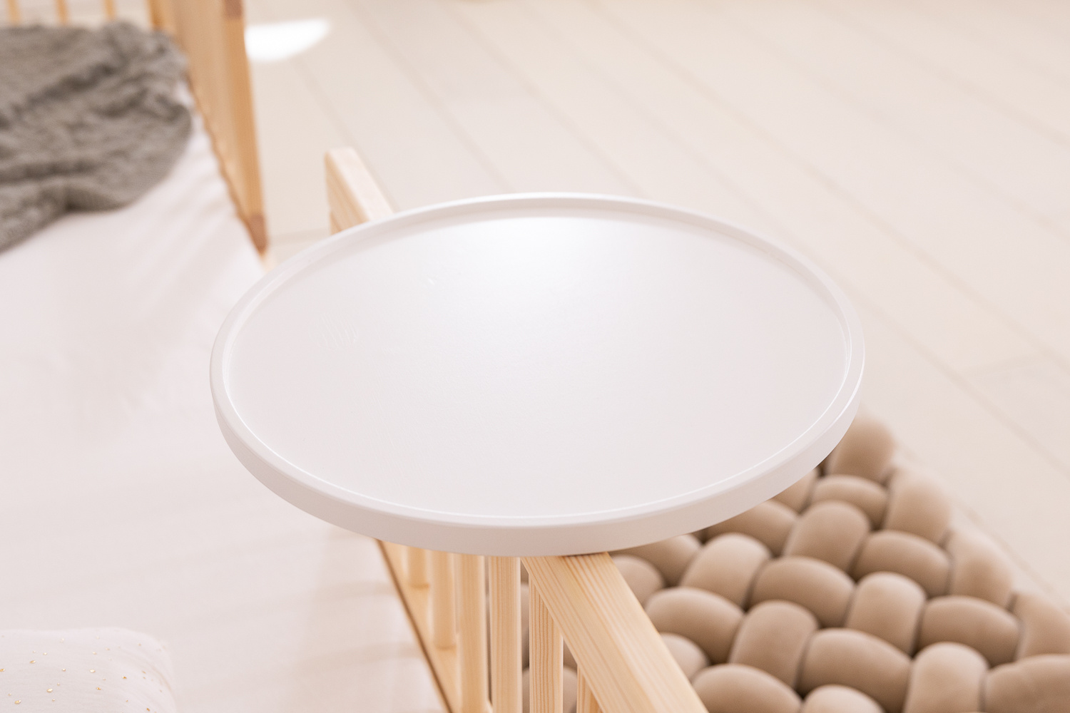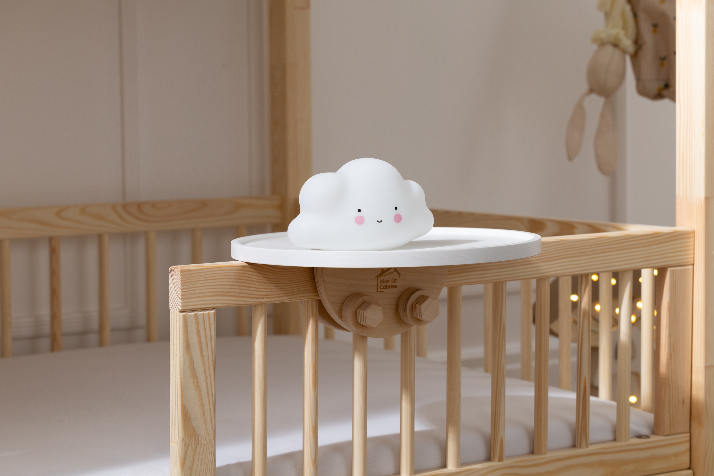 Progettata con grazia per essere fissata facilmente alle barriere del letto, questa tavoletta è l'aggiunta perfetta per contenere i libri preferiti dei vostri bambini o i loro peluche, mantenendo l'estetica elegante della loro camera da letto.