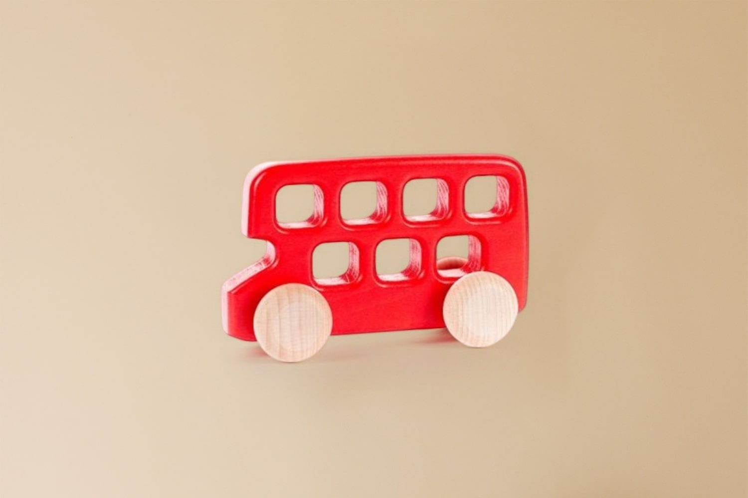 L'autobus ha elementi non verniciati, in linea con i valori della nostra azienda, garantendo che ogni giocattolo mantenga un elemento naturale in legno non dipinto.