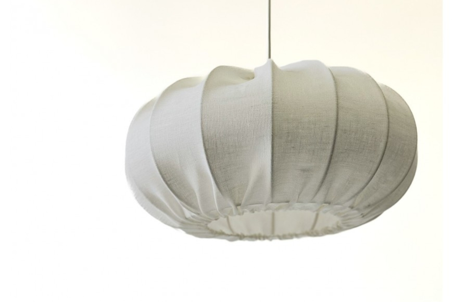 Delicado abajur feito em linho. Proporciona ao ambiente uma luz suave e acolhedora, criando uma atmosfera subtil e confortável.