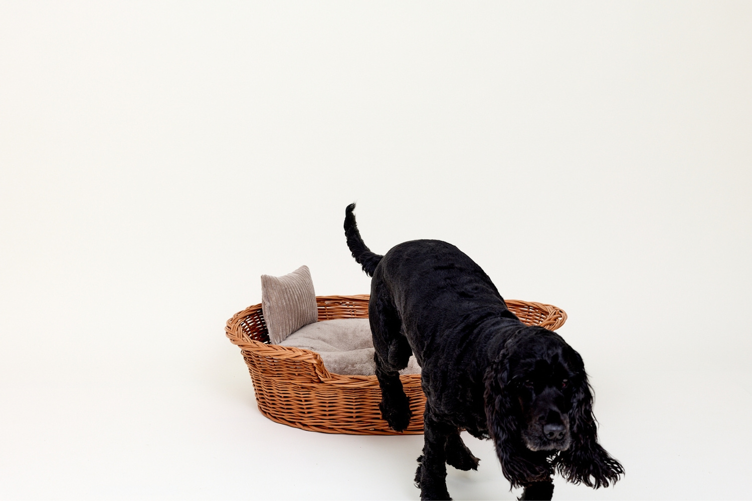 Um refúgio de conforto para o seu companheiro. Este cesto de vime para o seu cão combina design e conforto.