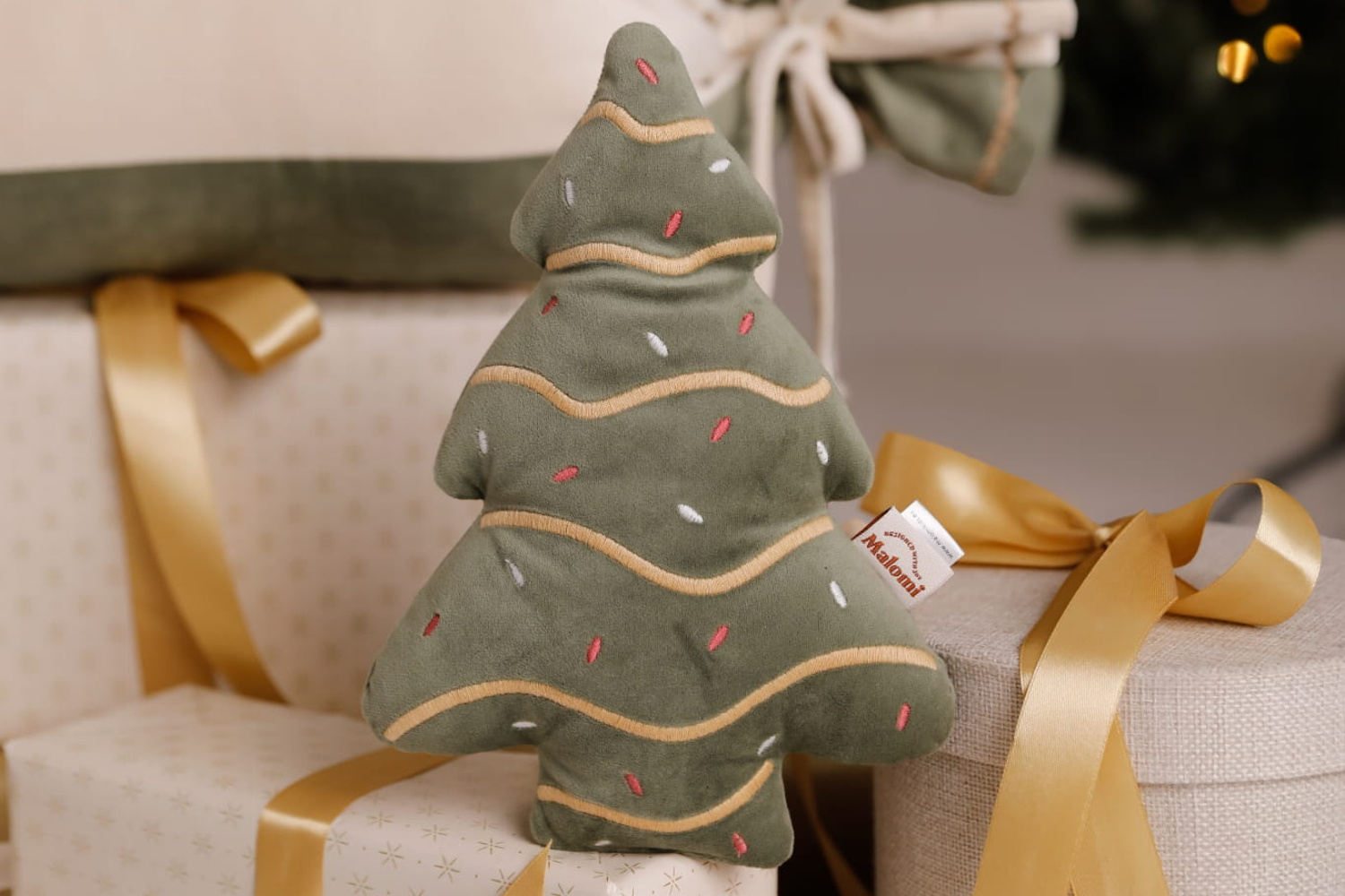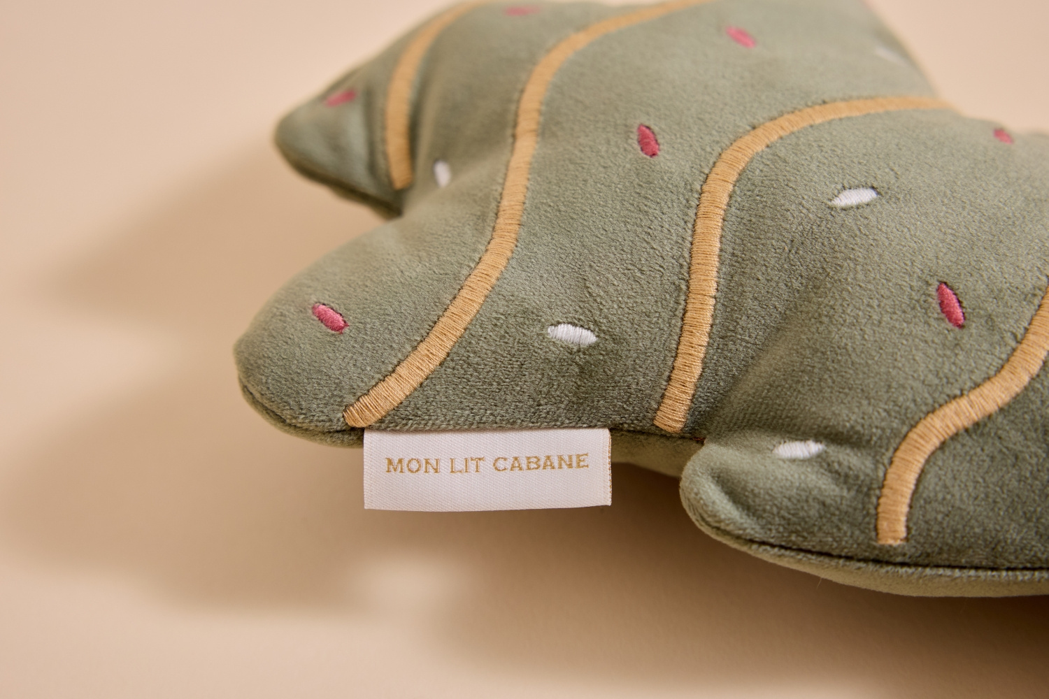 Dê um toque festivo e encantador à sua decoração com esta mini Árvore de Natal em veludo verde. Macia e agradável ao toque, está delicadamente decorada com bordados que lembram as decorações tradicionais de Natal.