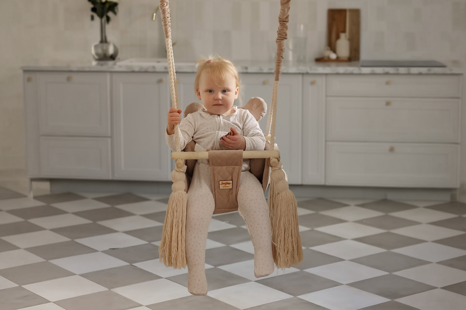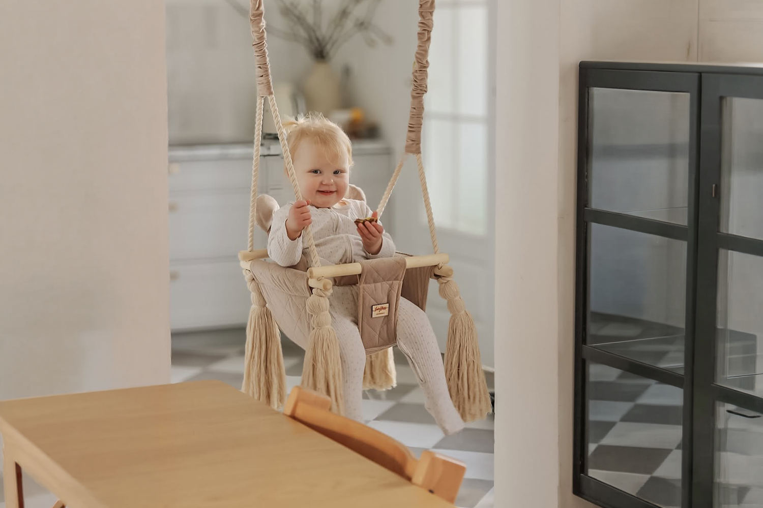 O Velvet Swing é bom para a saúde do seu filho. Contribui para o desenvolvimento e não exerce pressão na coluna ou na pelve. Fortalece o equilíbrio e promove o desenvolvimento psicomotor. Os movimentos do balanço permitem acalmar a criança suavemente.