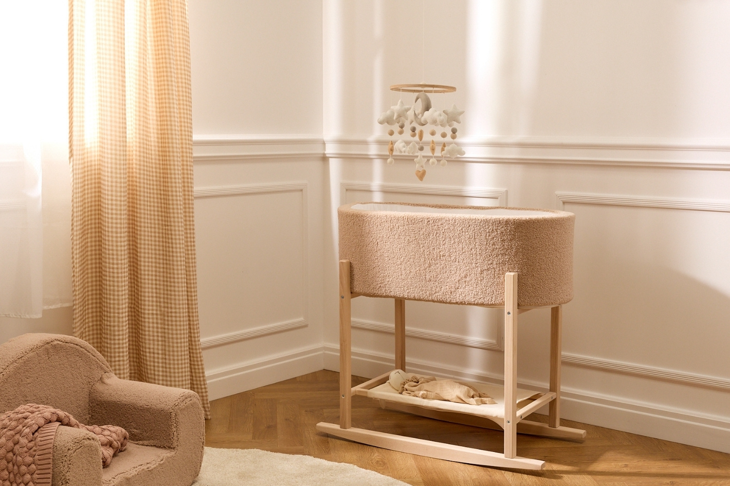 Berço Bouclé com Suporte - Cappuccino