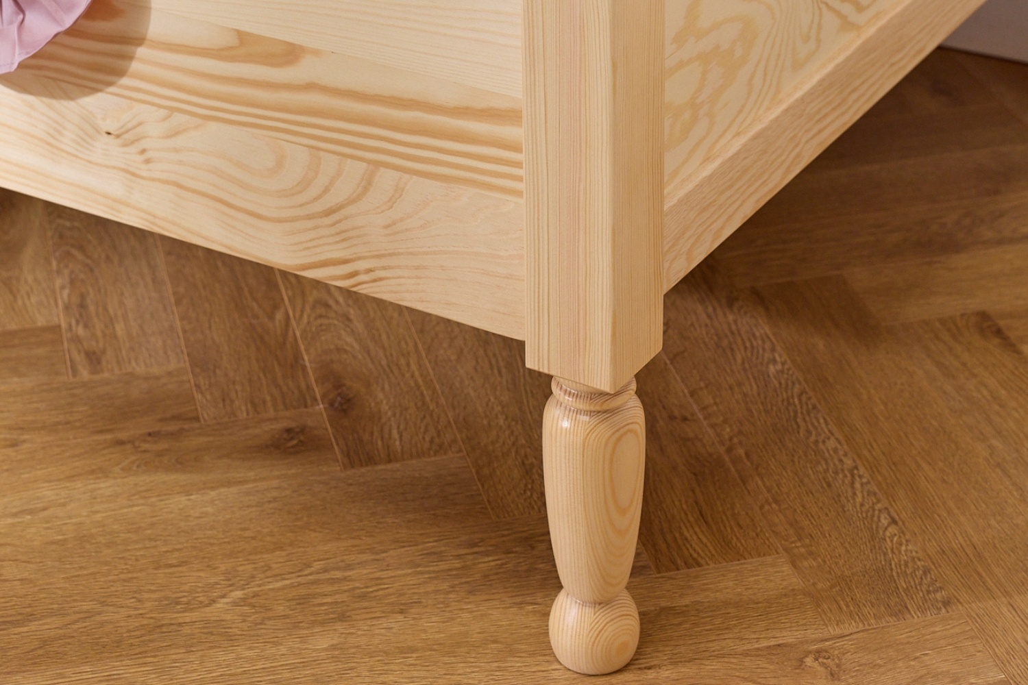 Todas as nossas camas são feitas de madeira de pinho não tratada. As bordas são arredondadas e cuidadosamente trabalhadas.