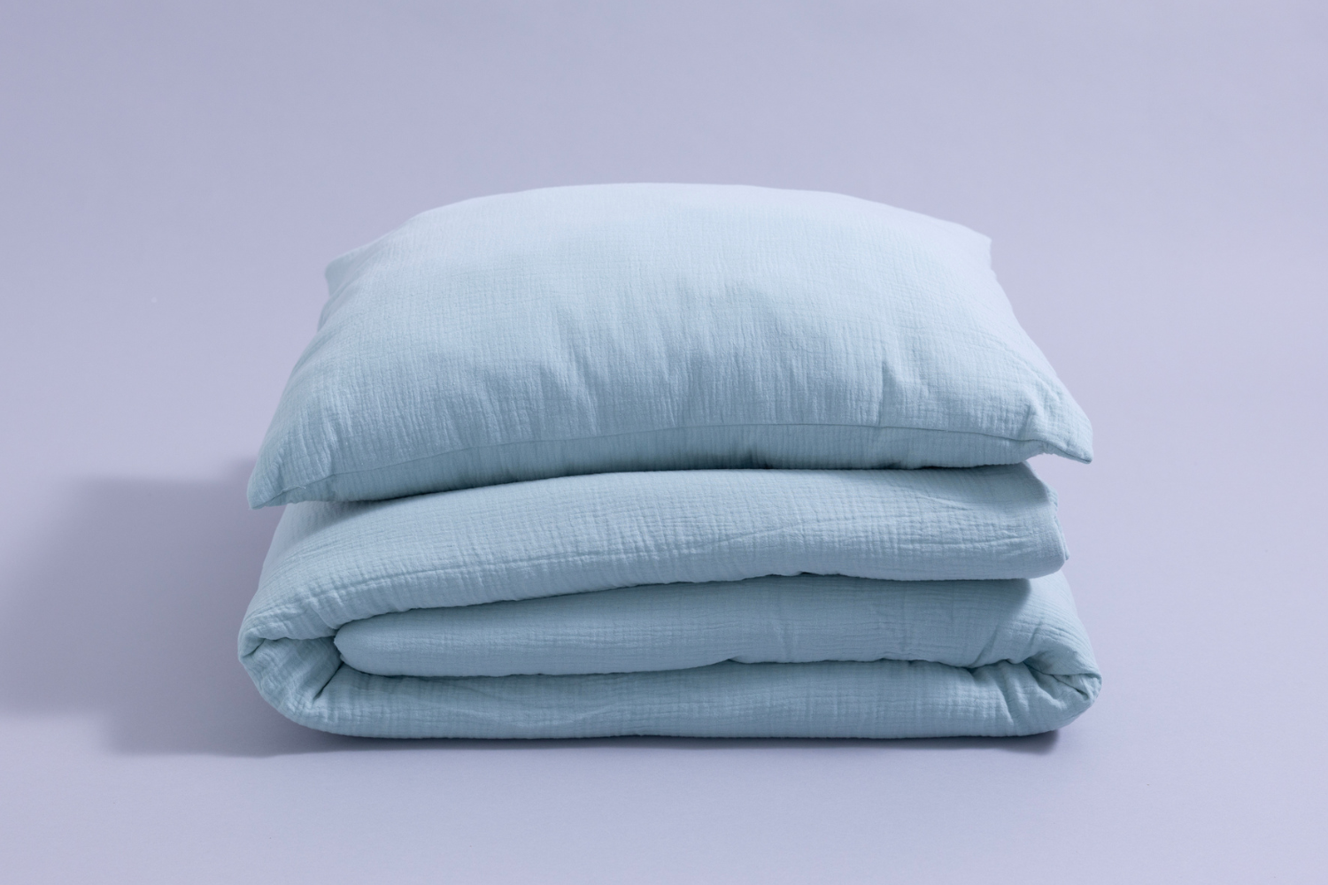 Conjunto de edredão e almofada em musselina de algodão 140x200 com enchimento - Menta