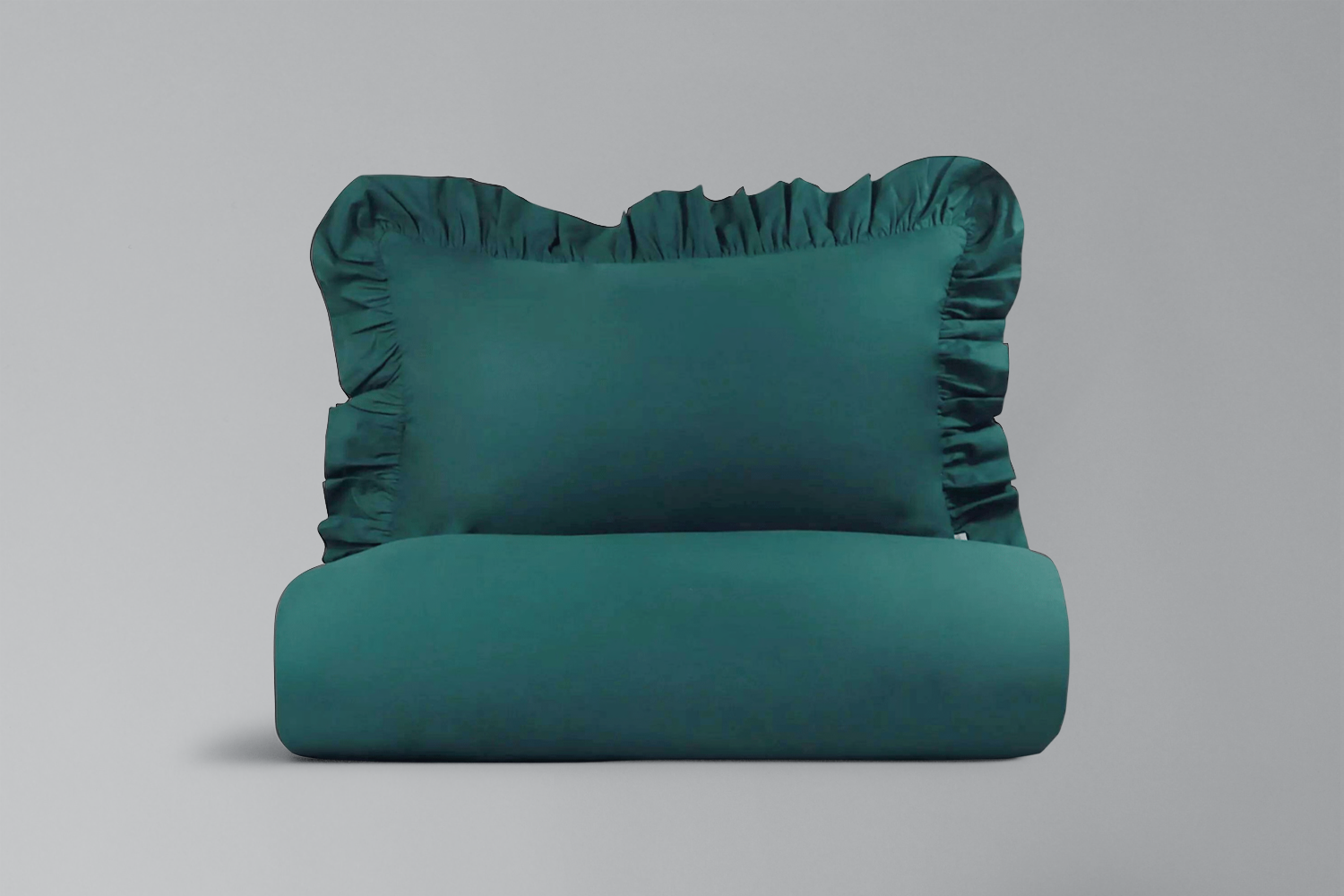 Conjunto Duvet Verde Escuro com Rufos 140x200cm