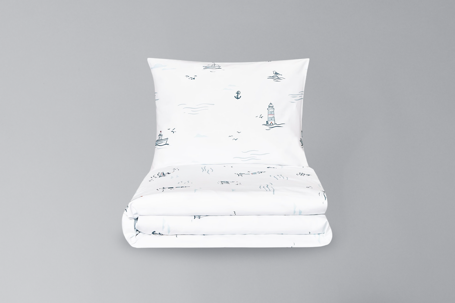 A nossa roupa de cama Ahoy é feita de algodão da mais alta qualidade com uma trama de cetim, o que a torna incrivelmente suave, arejada e agradável à pele.
