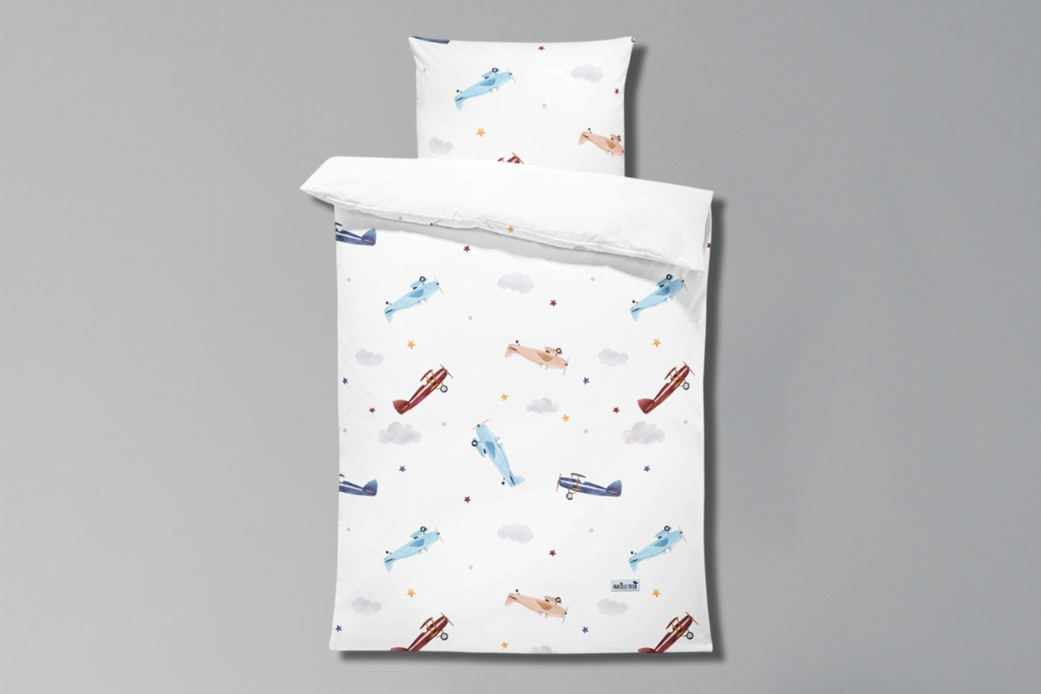 O conjunto inclui uma fronha de 60x60cm junto com uma capa de edredão de 120x170cm