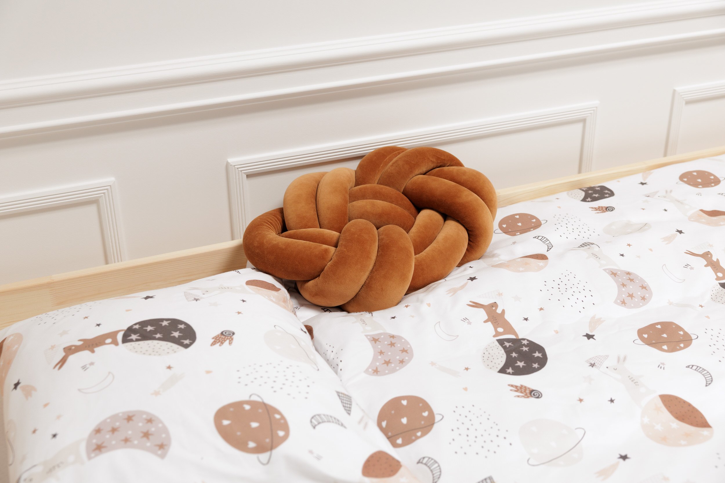 O conjunto inclui uma fronha de 60x60cm junto com uma capa de edredão de 120x170cm
