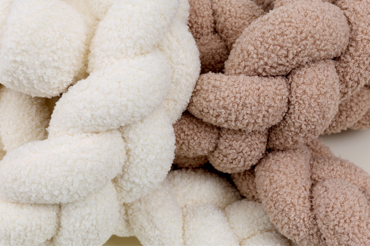 Feito à mão, tecido de malha bouclé, 100% poliéster e certificado Oeko-Tex 100.