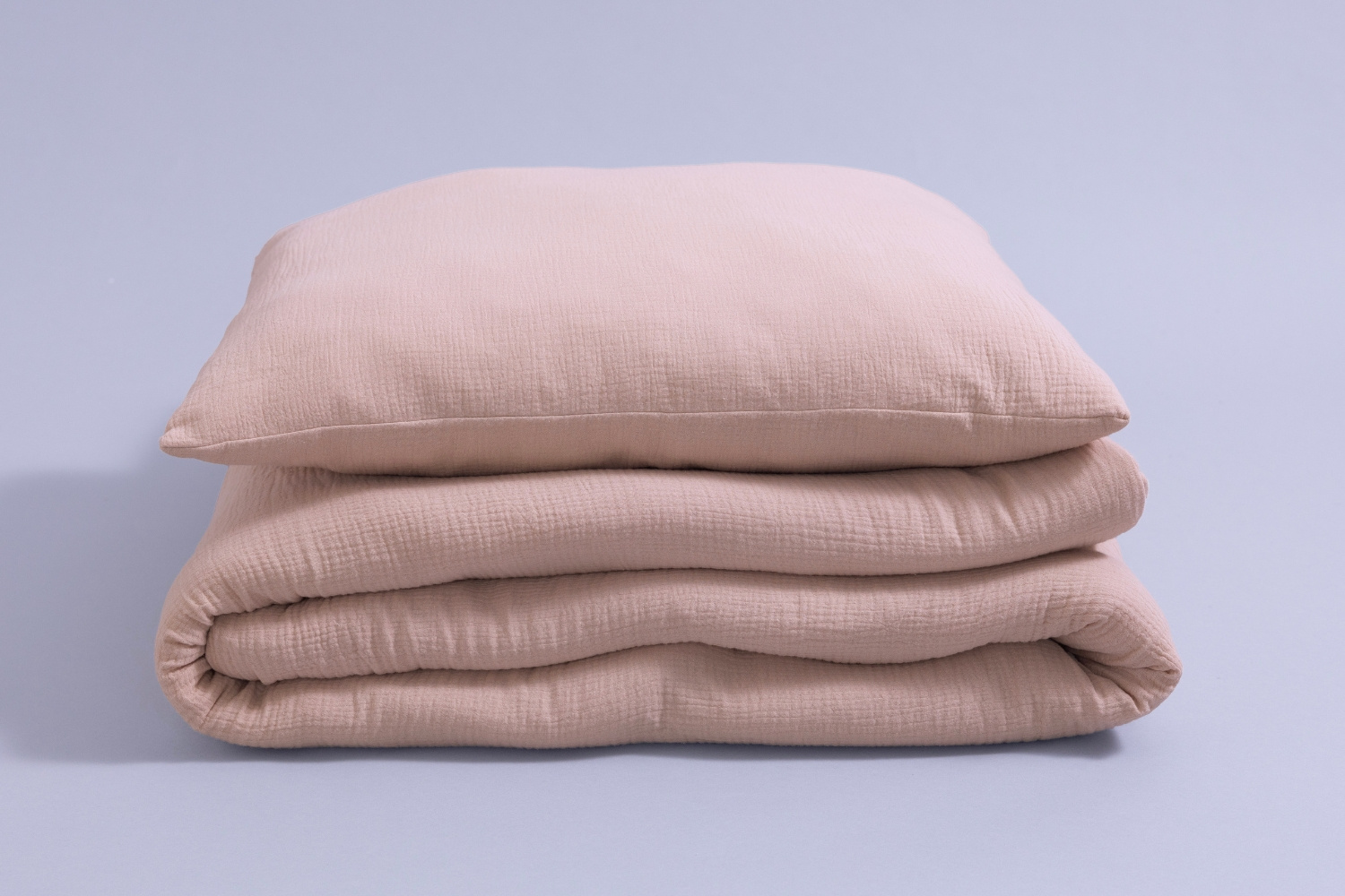 Conjunto de edredão e almofada em musselina de algodão 120x170 com enchimento - Cacau