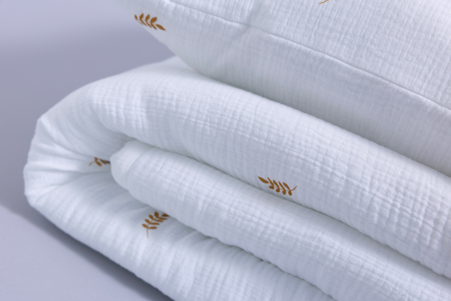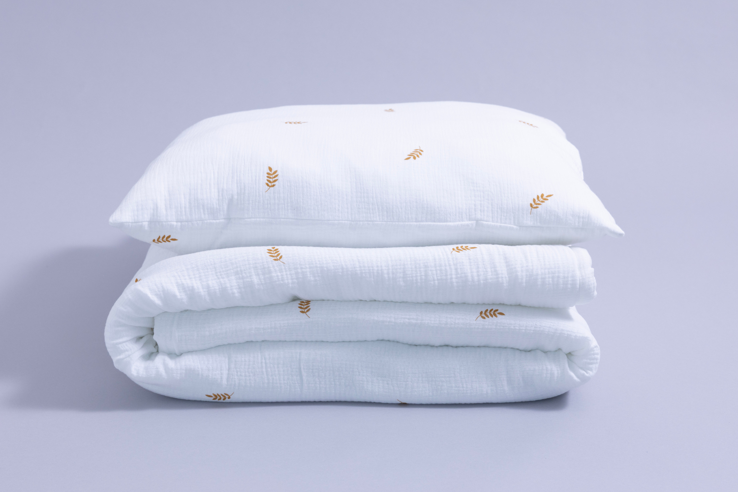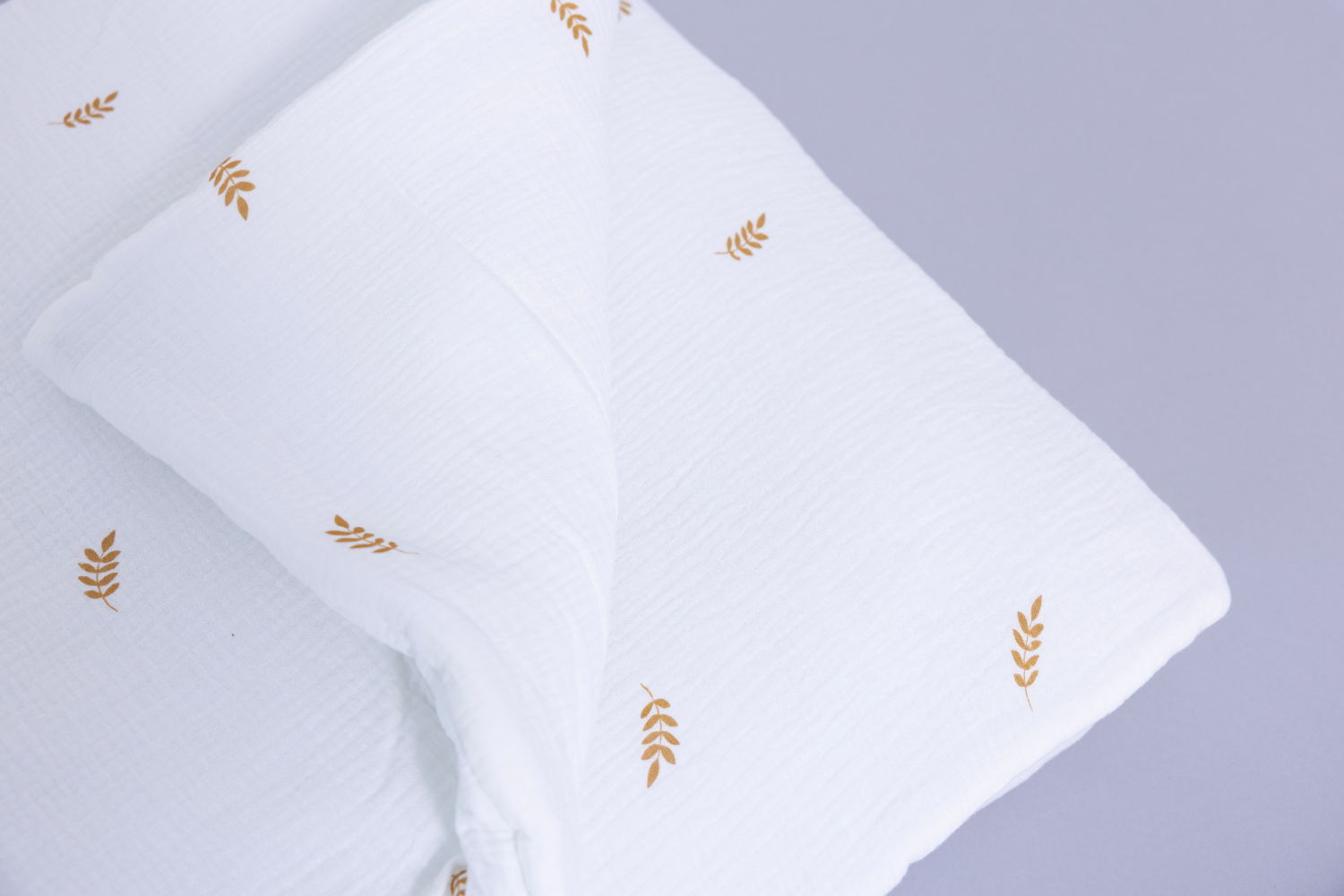 Conjunto de edredão e almofada em musselina de algodão 120x170 com enchimento - Campo de trigo