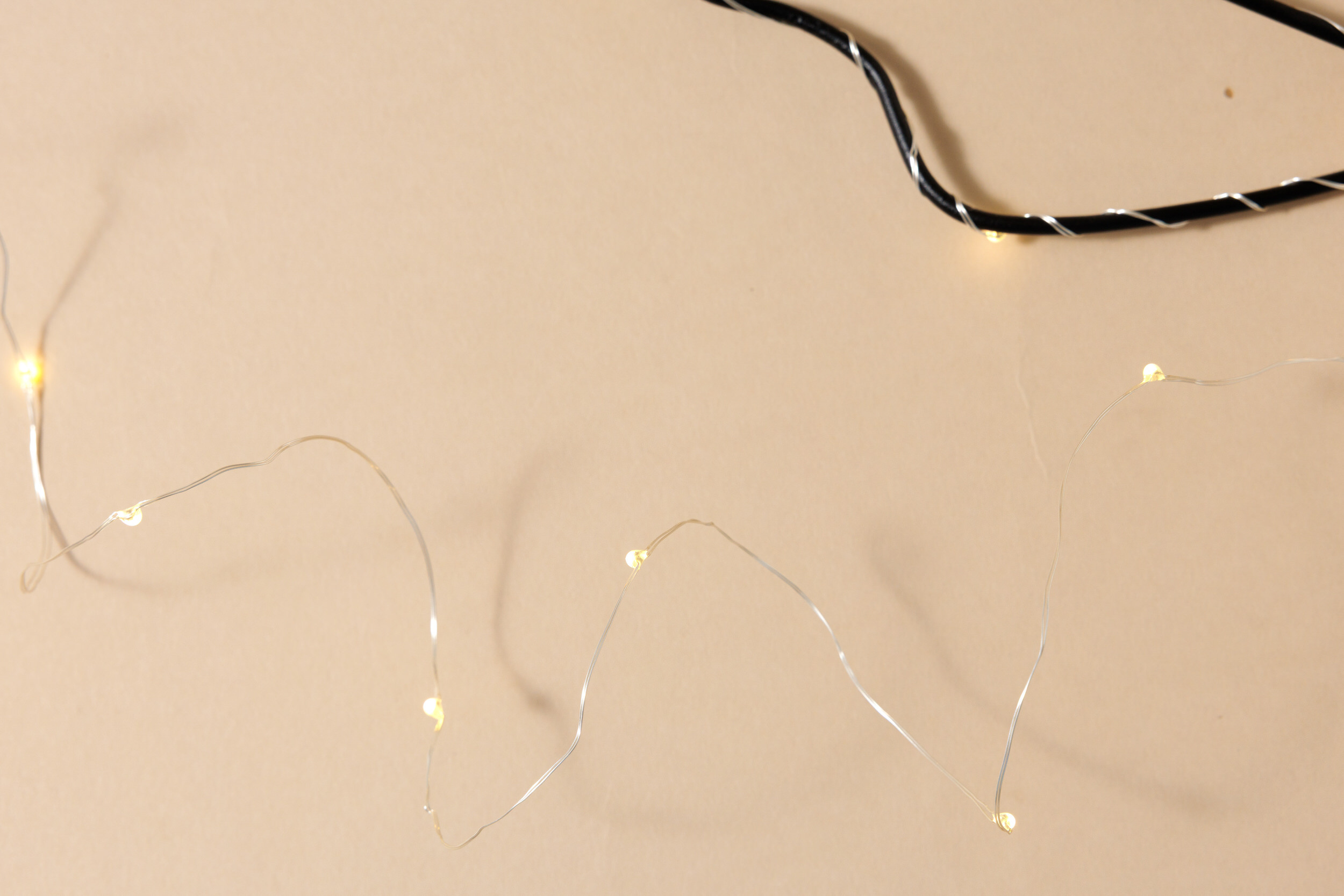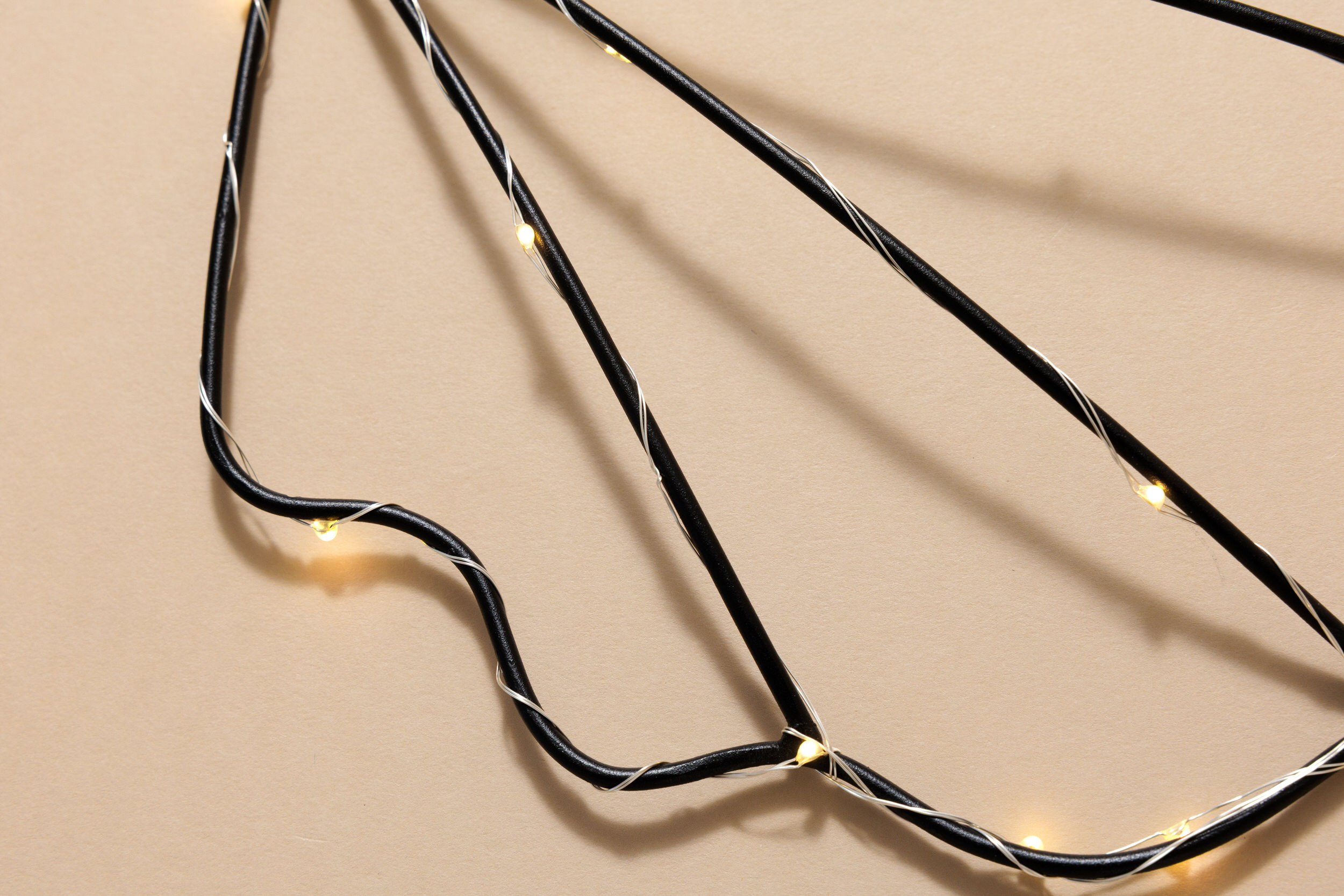 Arame de ferro com revestimento em pó, envolvido com cordão de luzes LED de 500 cm.